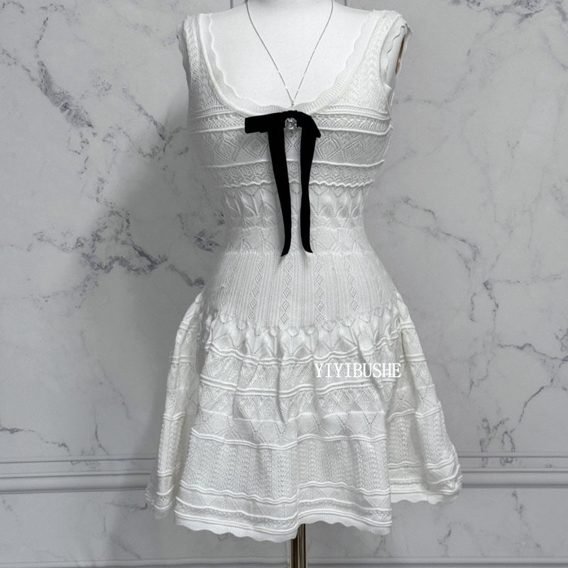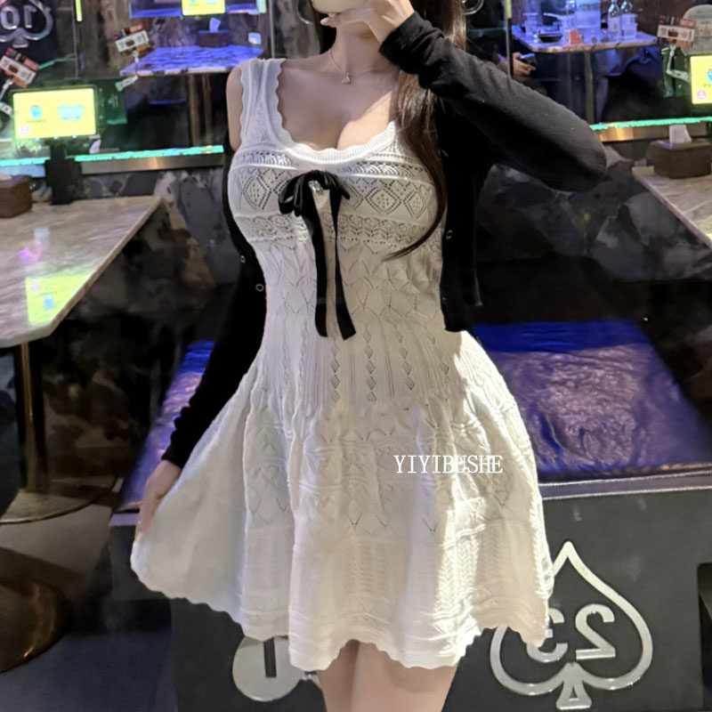 纯欲女人味掐腰无袖针织连衣裙