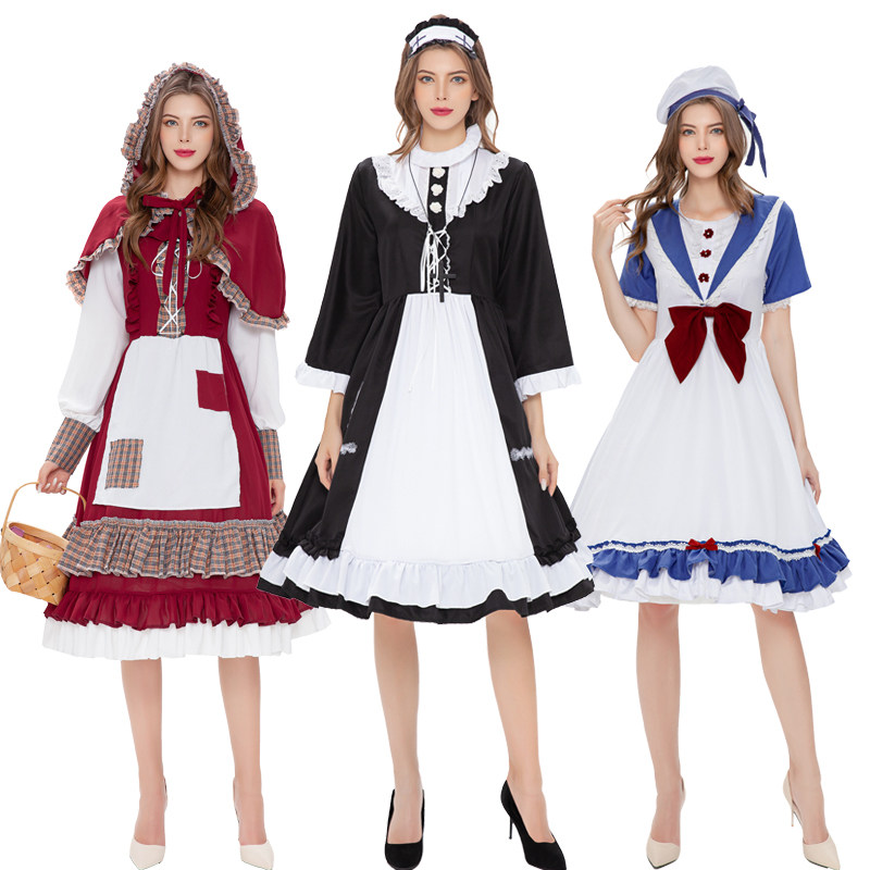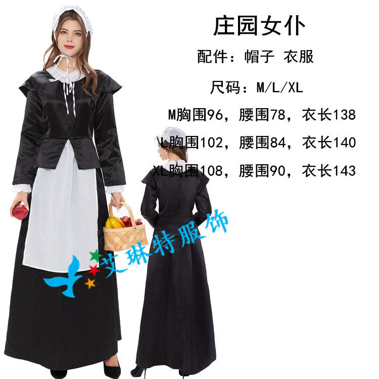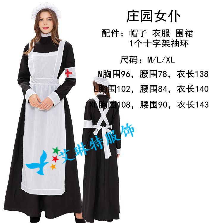 万圣节服装欧洲庄园女仆装 啤酒服 复古花园女佣长裙 舞台演出服