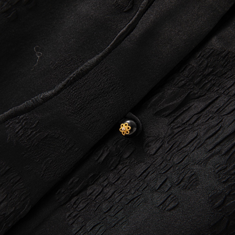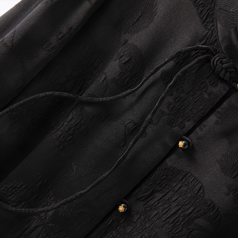 重磅桑蚕丝冠乐缎上衣女复古国风新中式立领长袖盘扣真丝衬衫外套