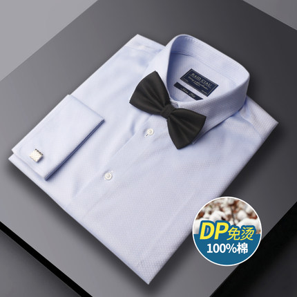 法式衬衫男长袖免烫蓝色纯棉款结婚新郎礼服正装西装男士袖扣衬衣
