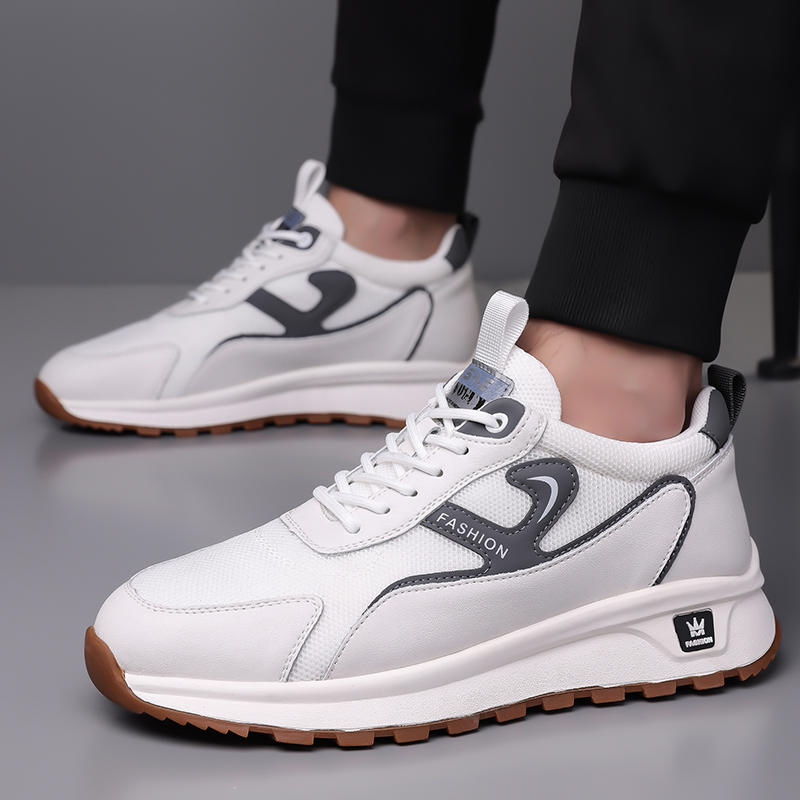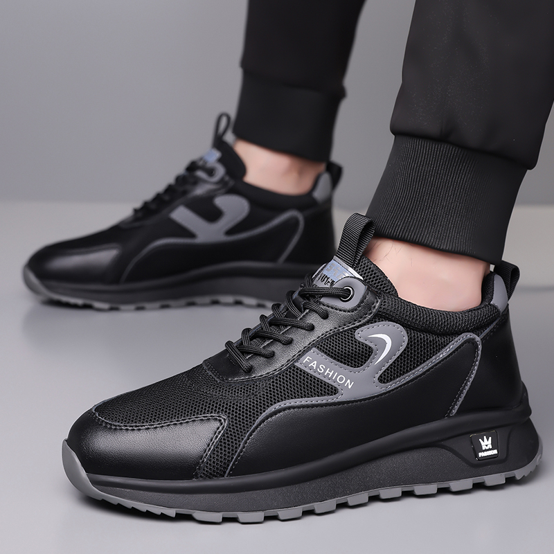皮鞋男士2025春夏新款休闲运动鞋牛筋底透气网布老爹鞋防滑增高鞋