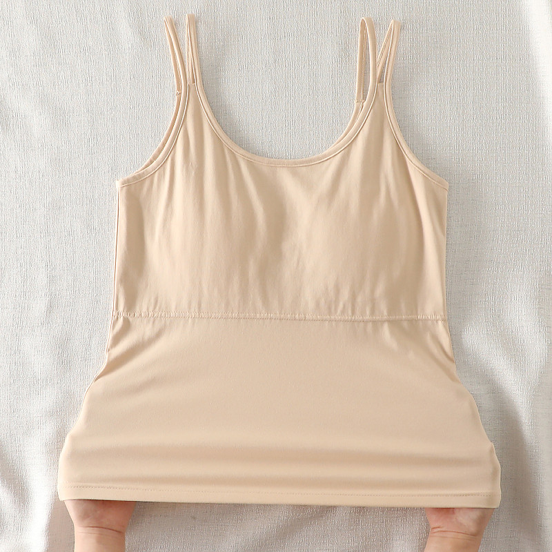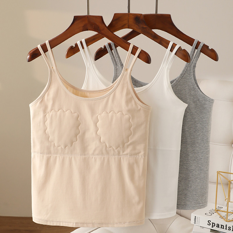 夏季防凸点中老年人带胸垫棉吊带背心女内搭妈妈打底内衣文胸一体