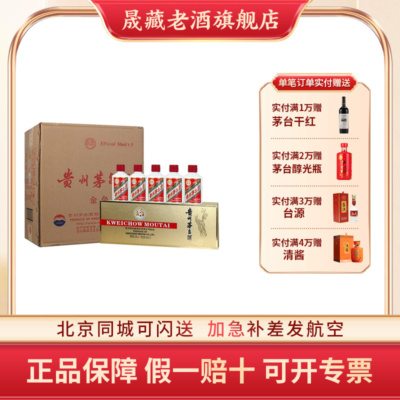 晟藏老酒 贵州茅台酒飞天茅台小金条53度50ML*5瓶*12条整箱装白酒