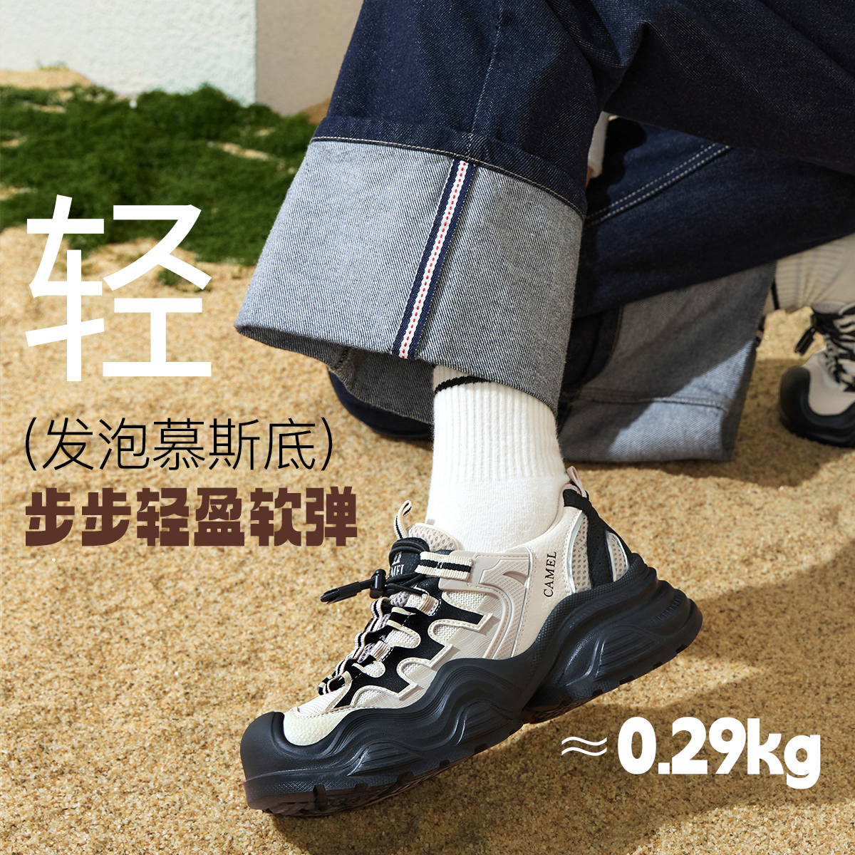 骆驼女鞋2025秋季新款厚底丑萌鞋女户外登山鞋时尚休闲鞋运动鞋女