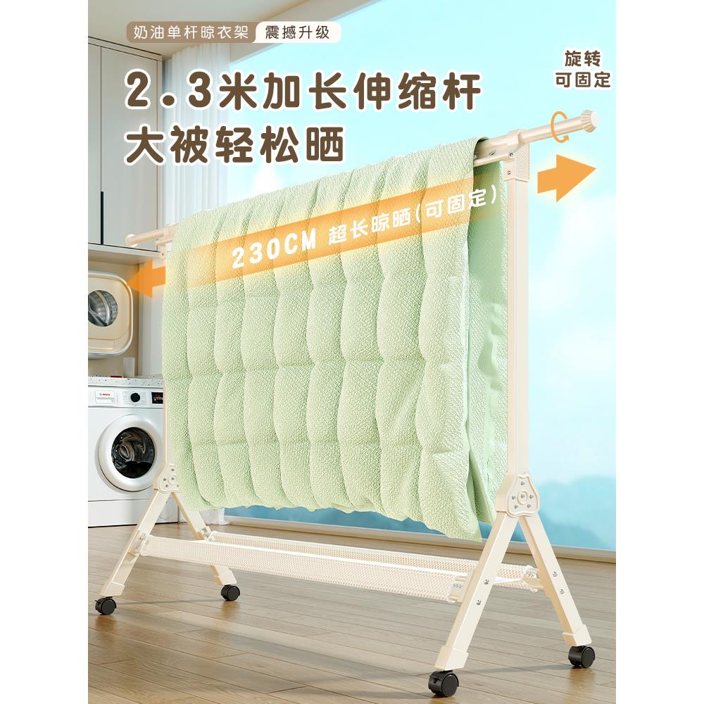 晾衣架落地折叠铝合金晒衣架室内伸缩移动挂衣架阳台晾晒被子神器