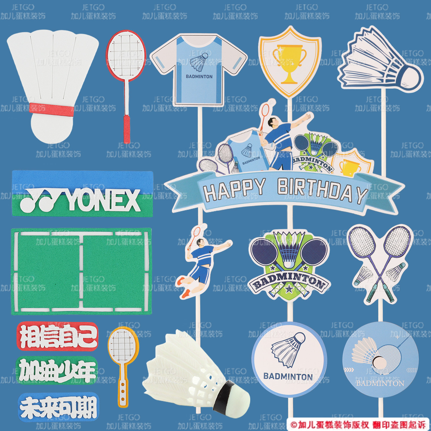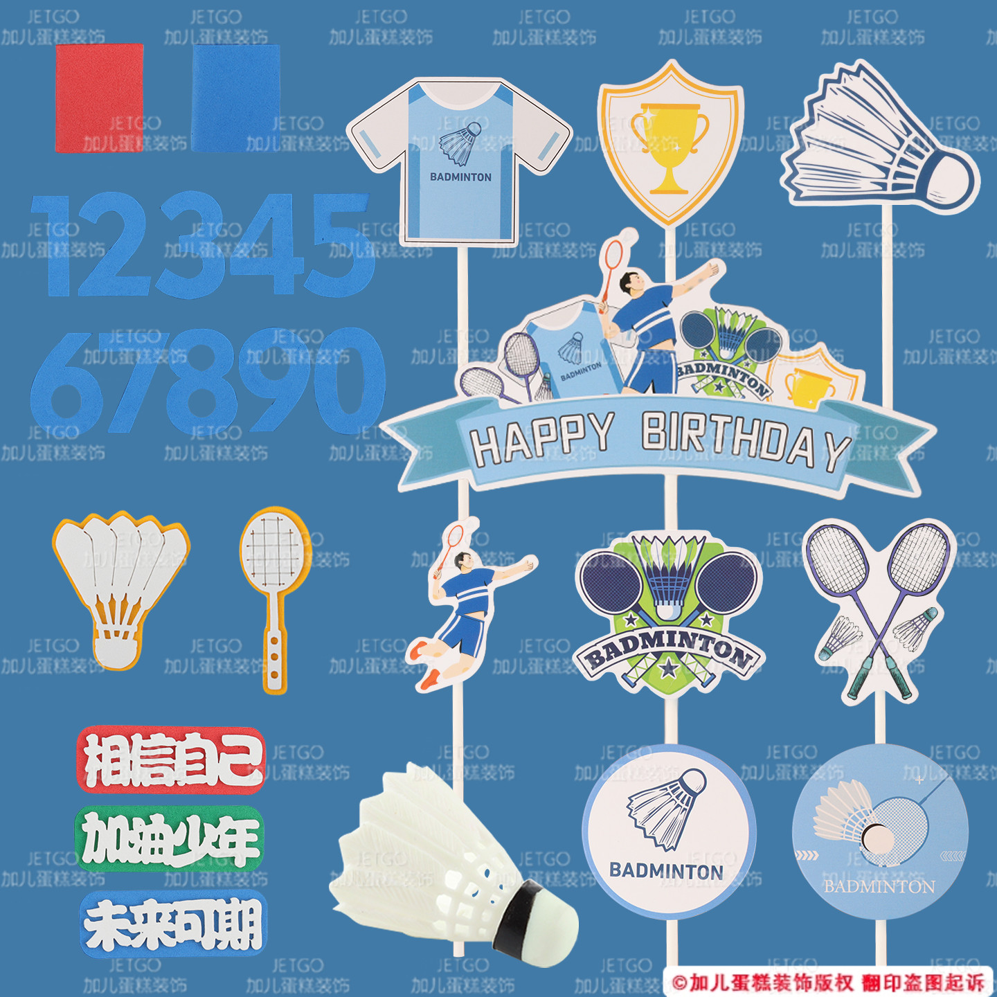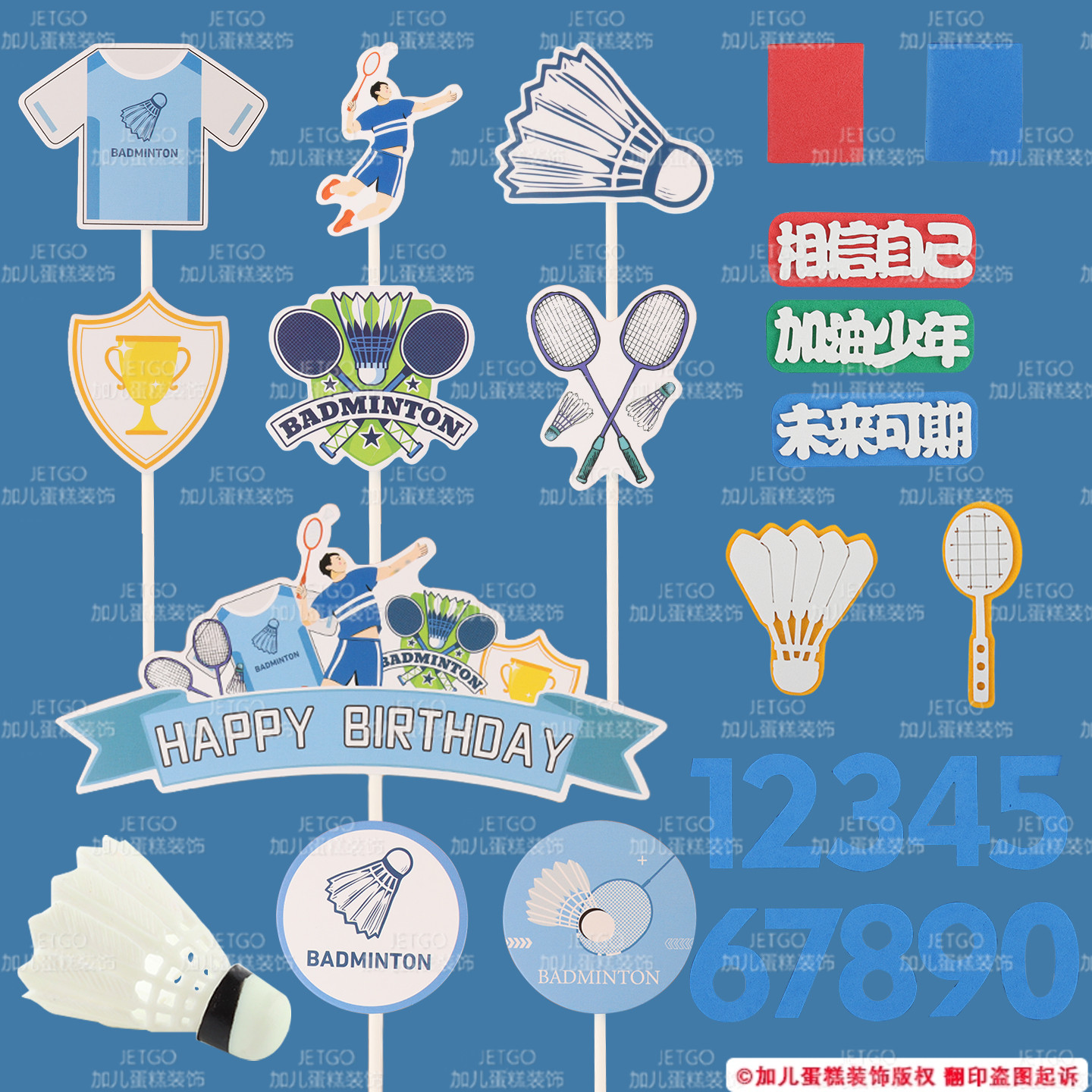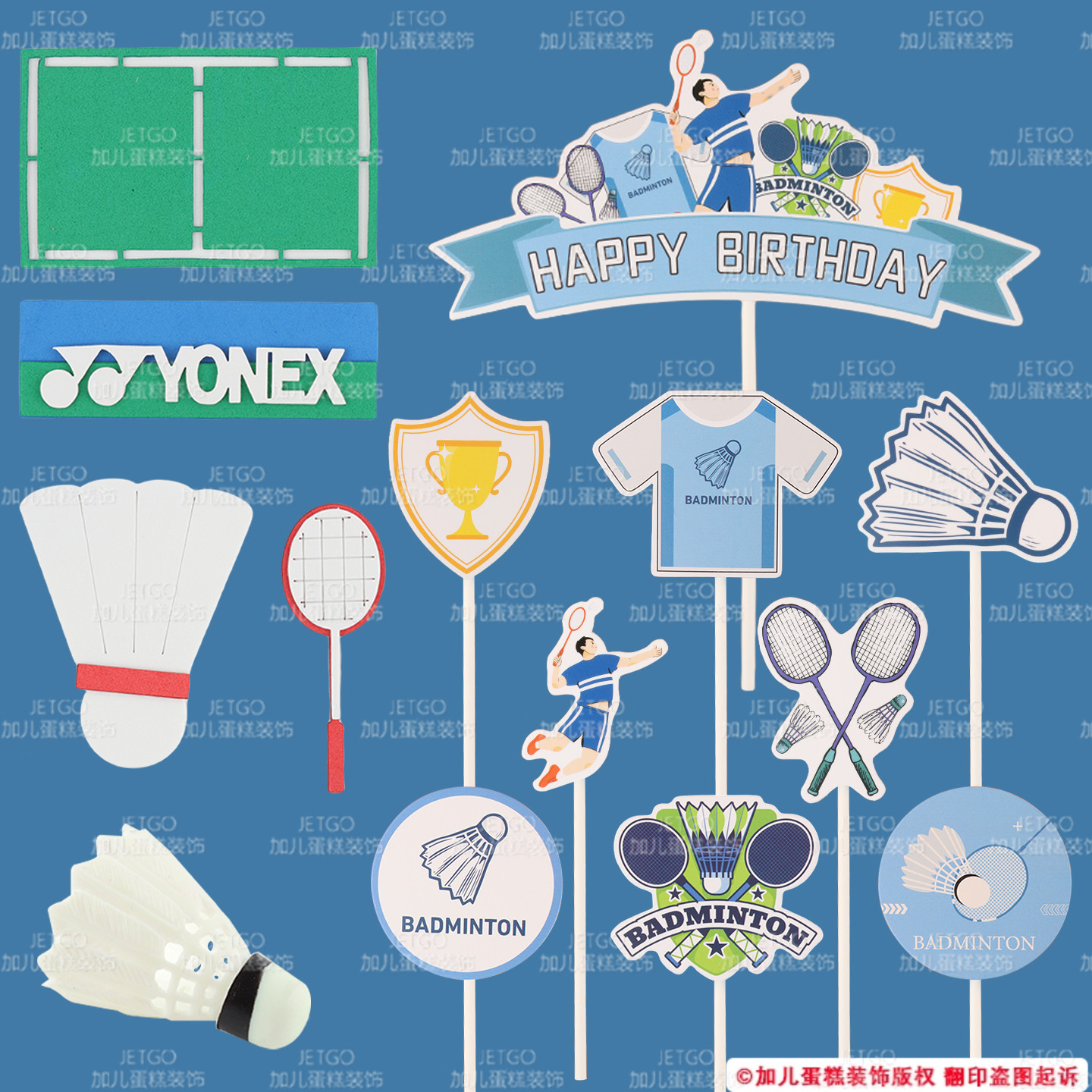 羽毛球蛋糕装饰插件蓝色生日甜品台插牌烘焙装扮配件插卡男神男生