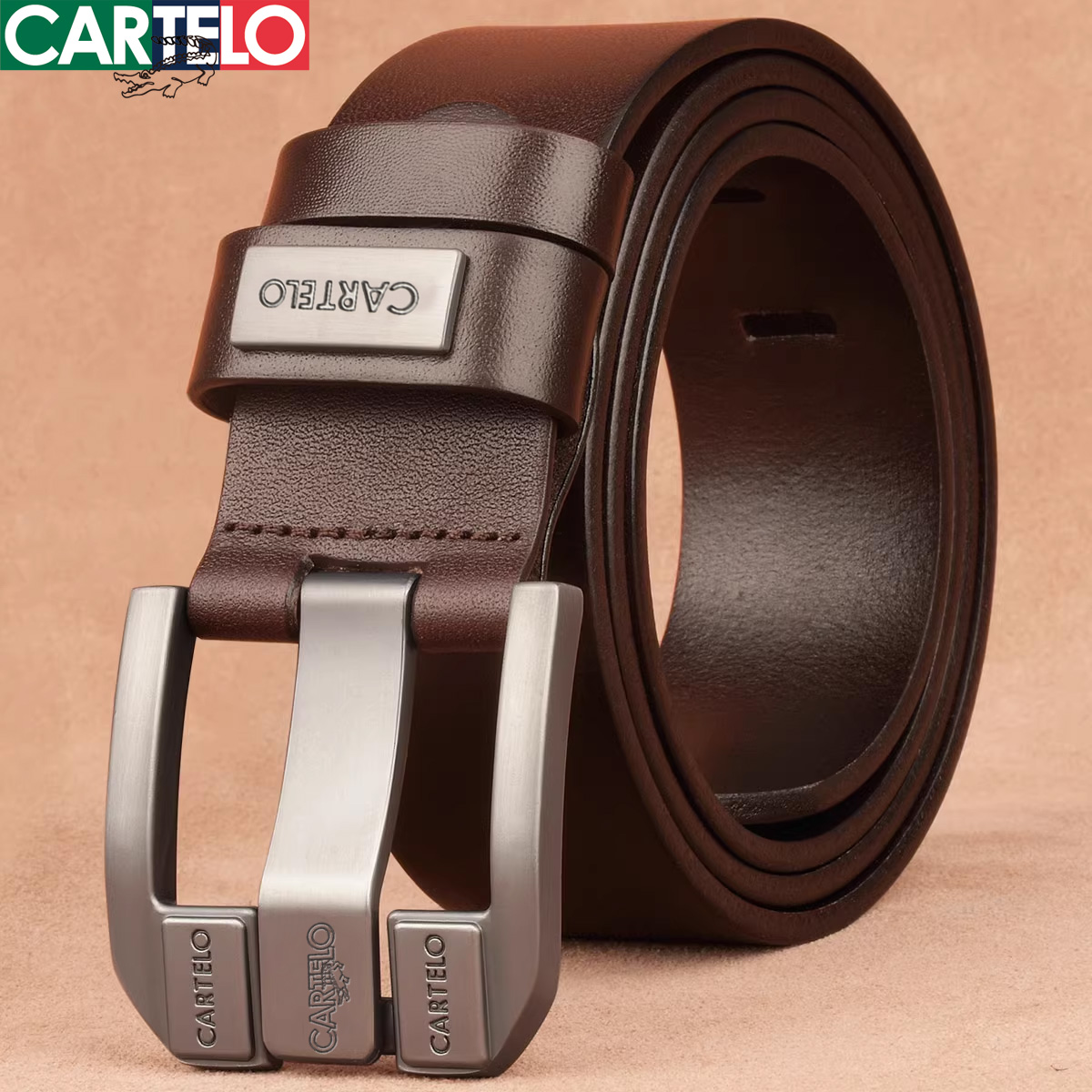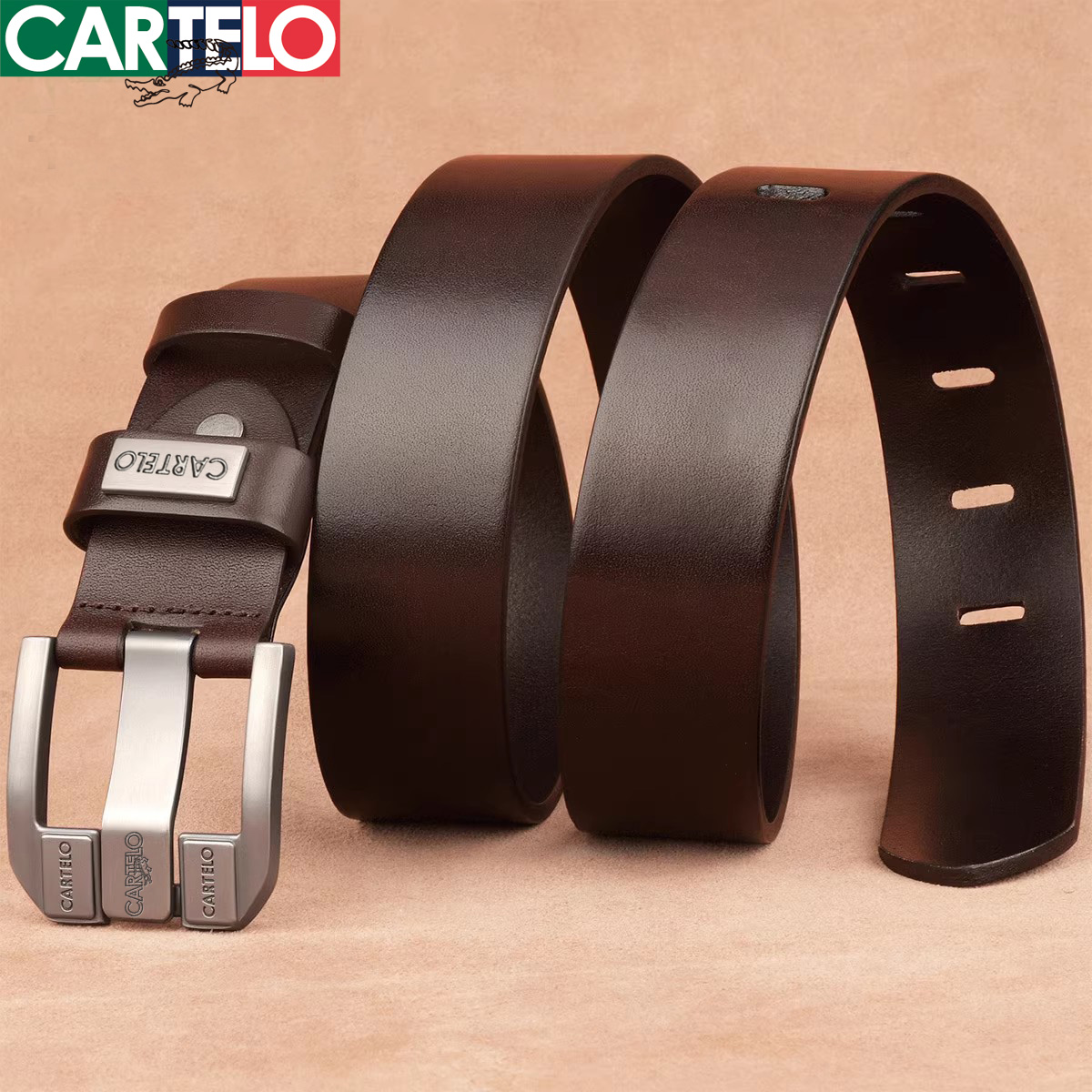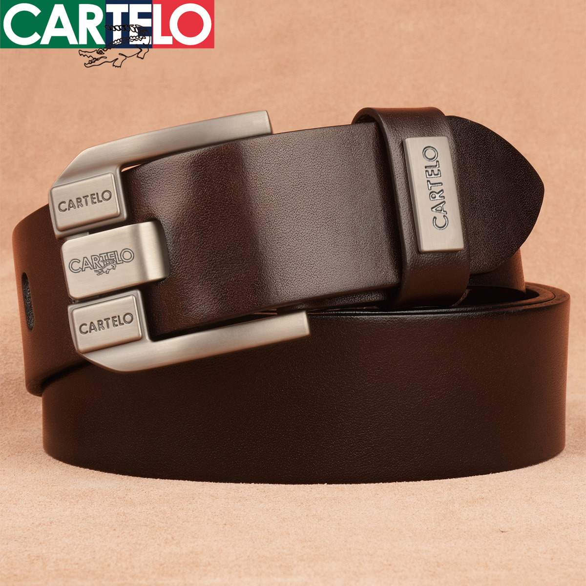 卡帝乐鳄鱼牛皮皮带男士真皮针扣青年休闲头裤带扁针扣腰带层