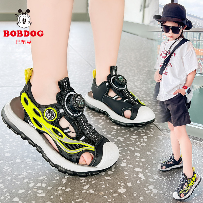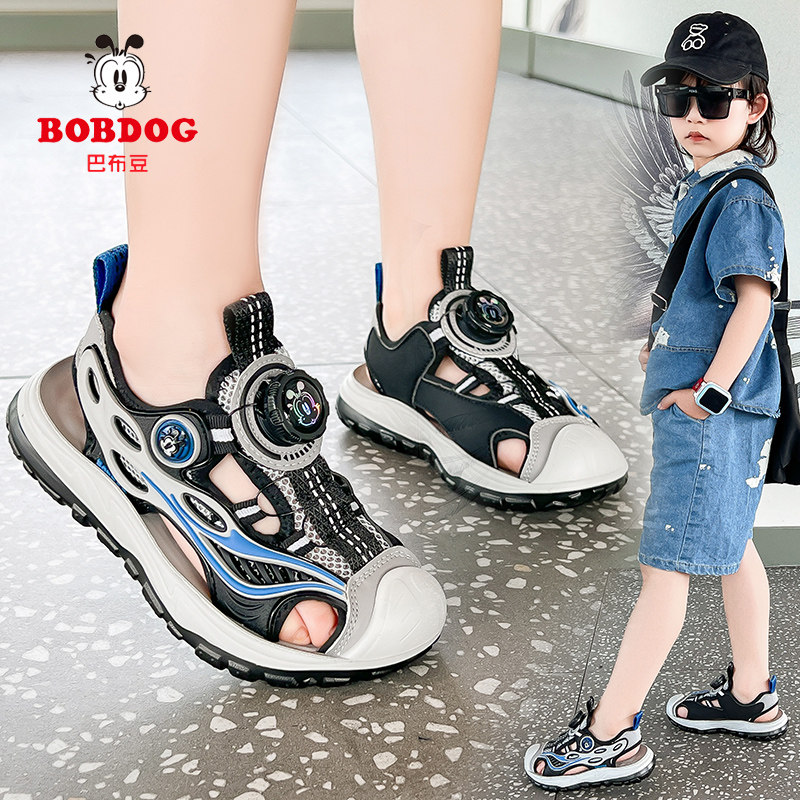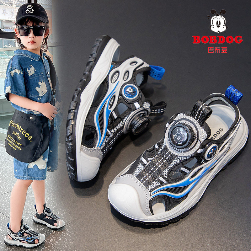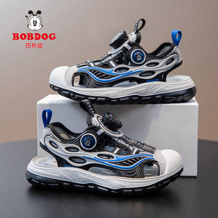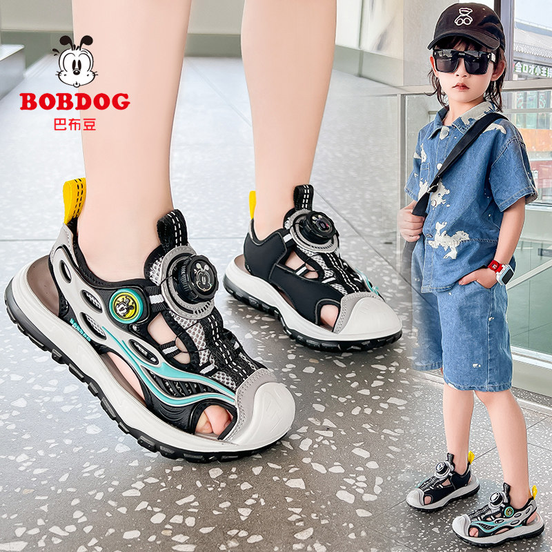 巴布豆夏季男童包头凉鞋旋转纽扣儿童中大童运动防撞跑步沙滩鞋子