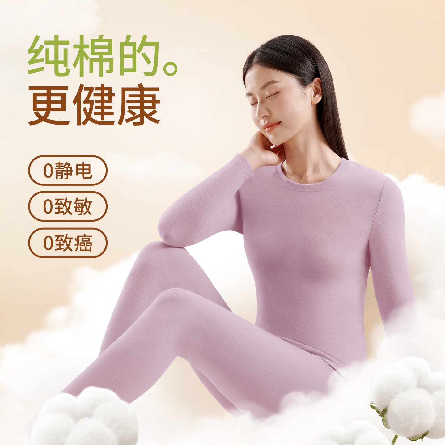 新一步纯棉保暖内衣中高领女秋衣秋裤磨绒加厚款棉毛衫【7A抗菌】