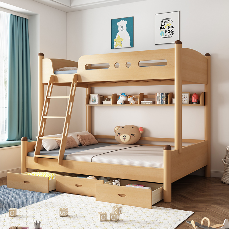 榉木高低床全实木儿童上下床双层床子母床多功能小户型两层上下铺