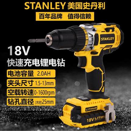 史丹利电钻家用充电式手电钻18V锂电动螺丝刀SCD20C2K工具手电钻