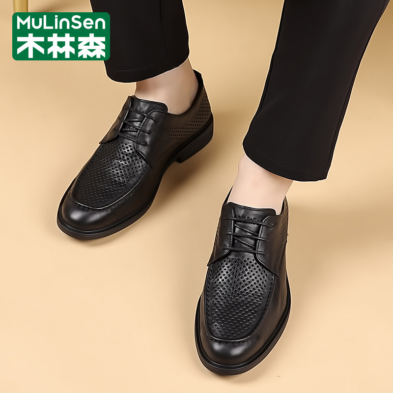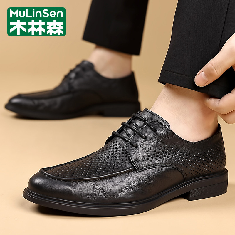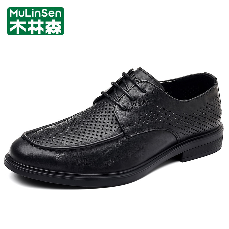 木林森男士皮鞋夏季真皮镂空透气网眼休闲商务英伦风正装马丁潮鞋