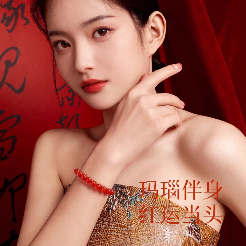 庆祥泰红玛瑙散珠天然水晶配件串珠玉手工diy手串手链红色圆珠子