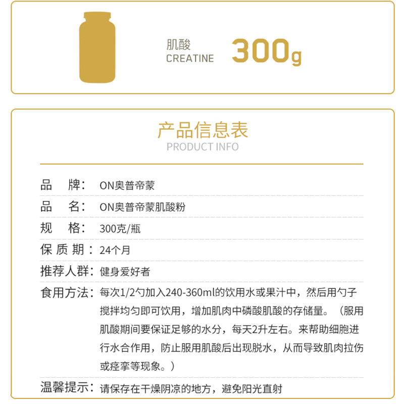 ON奥普帝蒙一水纯肌酸粉100次量