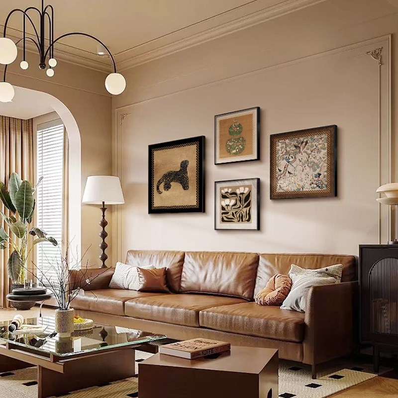 意式中古风餐厅装饰画抽象组合客厅沙发背景墙挂画小众艺术画壁画