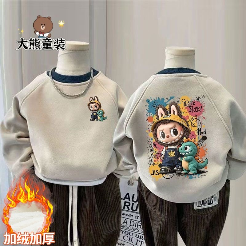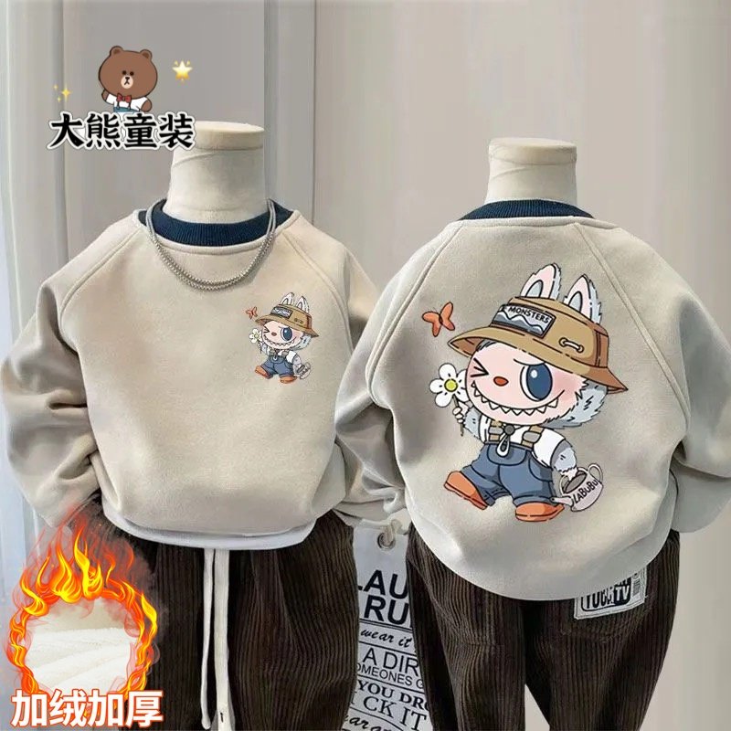 童装卡通拉布布春秋冬小中大男女儿童圆领加绒卫衣宽松厚款长袖潮