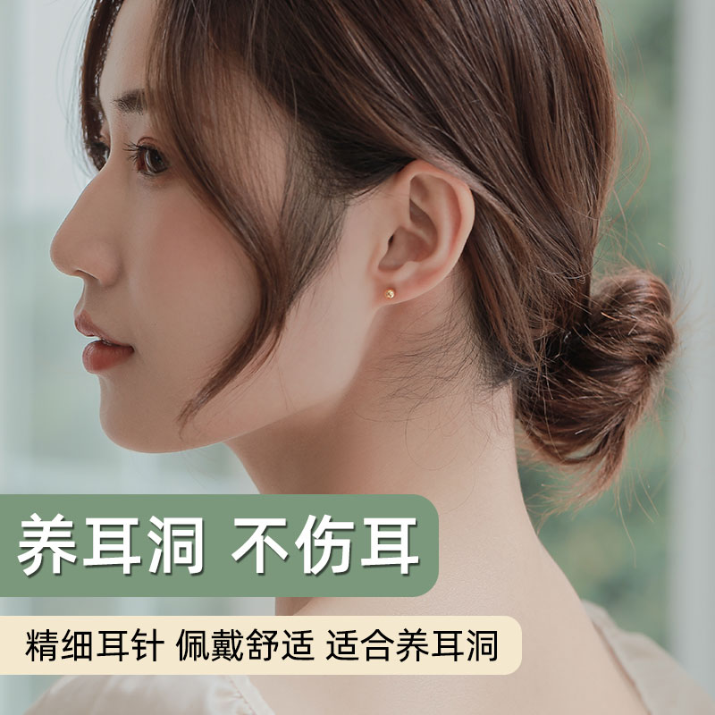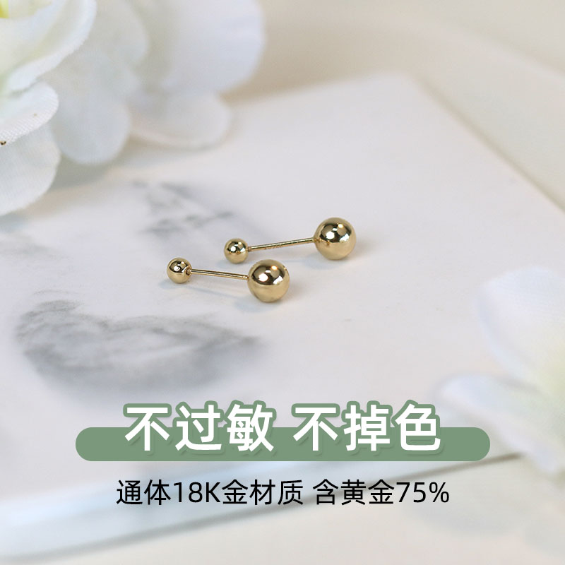 免摘18k金耳钉女彩金拧螺丝小金豆耳丁玫瑰金耳骨钉黄金Au750耳饰