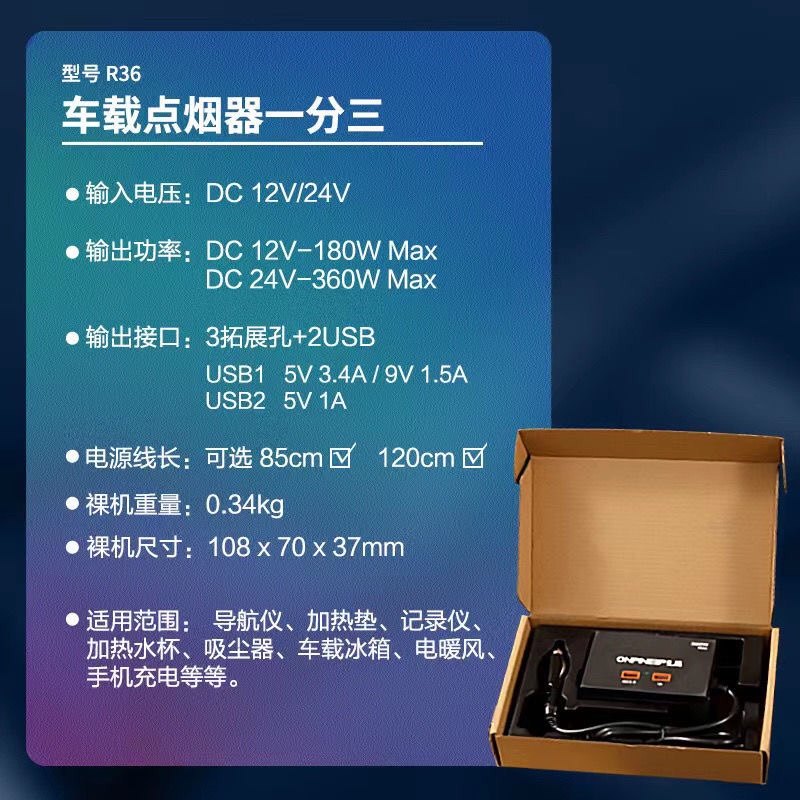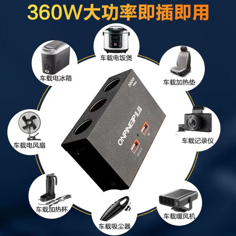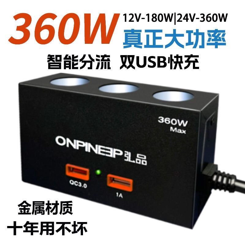 货车大功率点烟器一拖三车载充电器汽车转换插头一分三快充12/24V