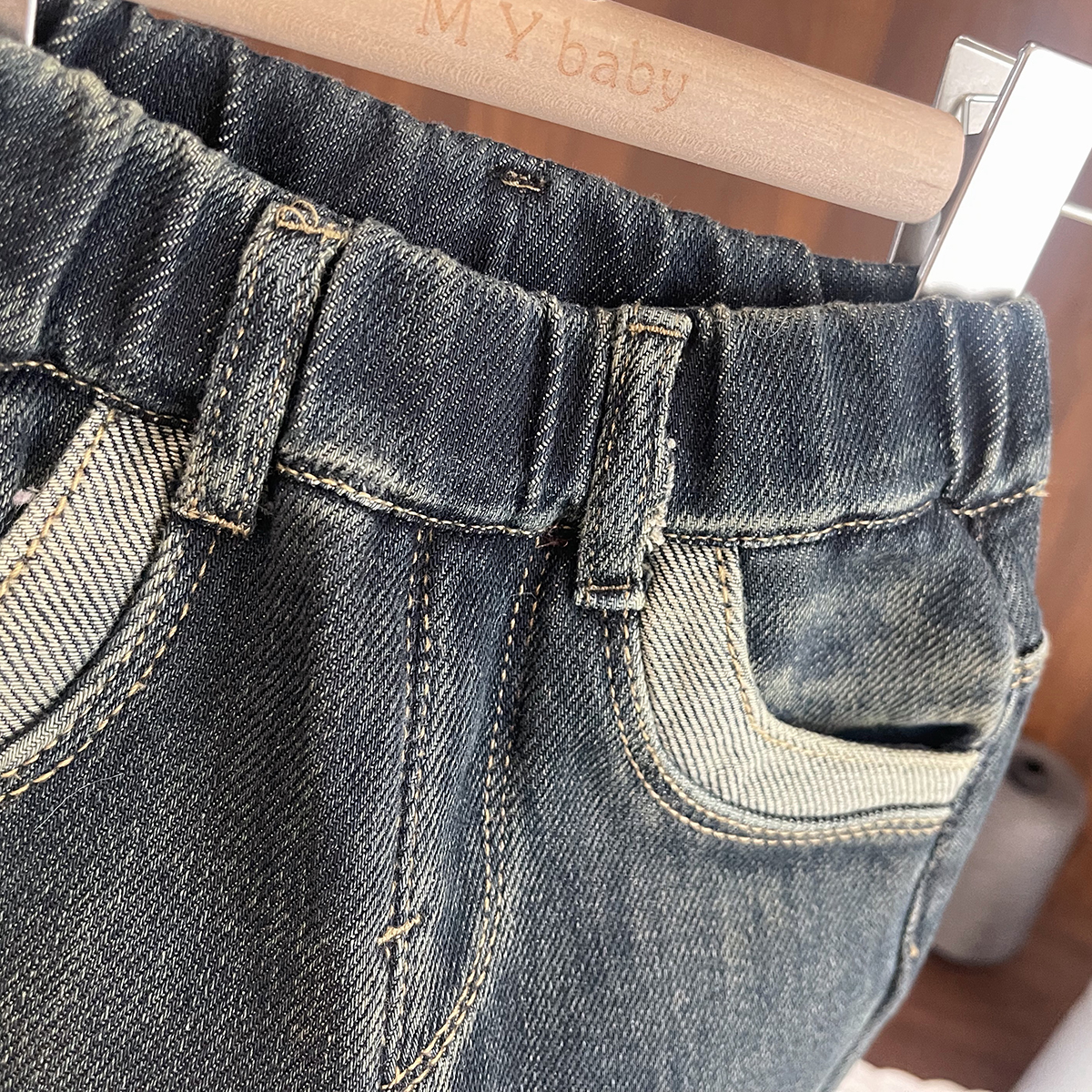 1-5岁女宝宝时尚复古牛仔裤3女婴儿童秋冬季女童加厚一体绒直筒裤