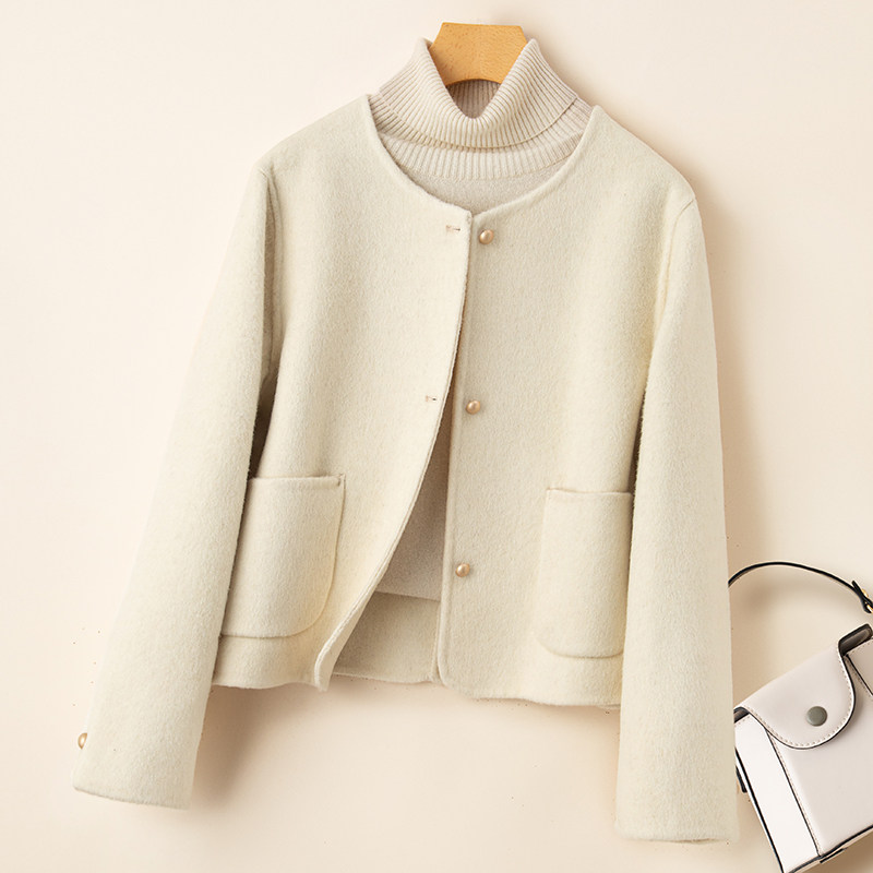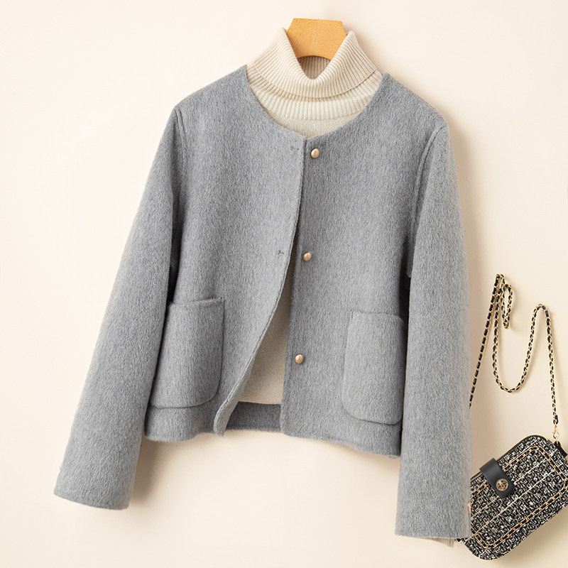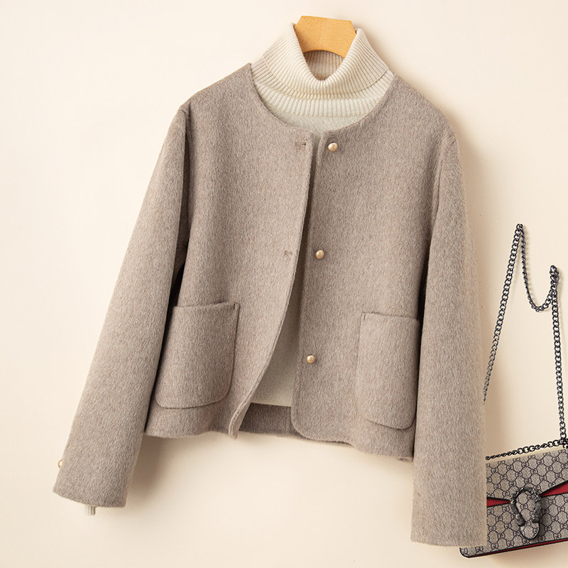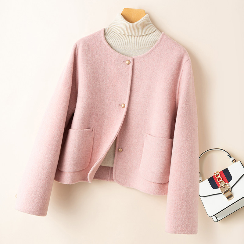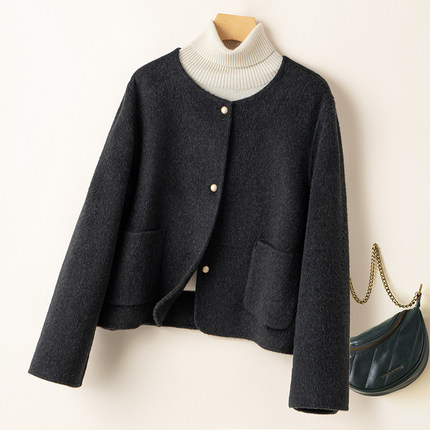 秋冬新款双面羊绒大衣女短款小个子高端气质宽松版黑色毛呢外套