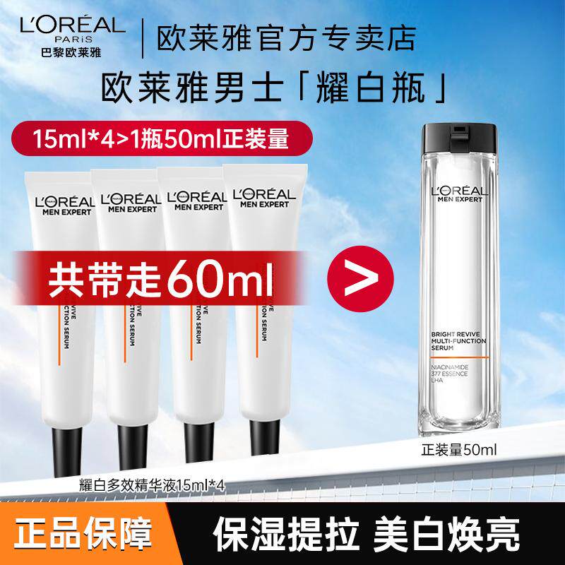 欧莱雅男士耀白瓶精华液美白淡化痘印烟酰胺淡斑保湿提亮护肤品男