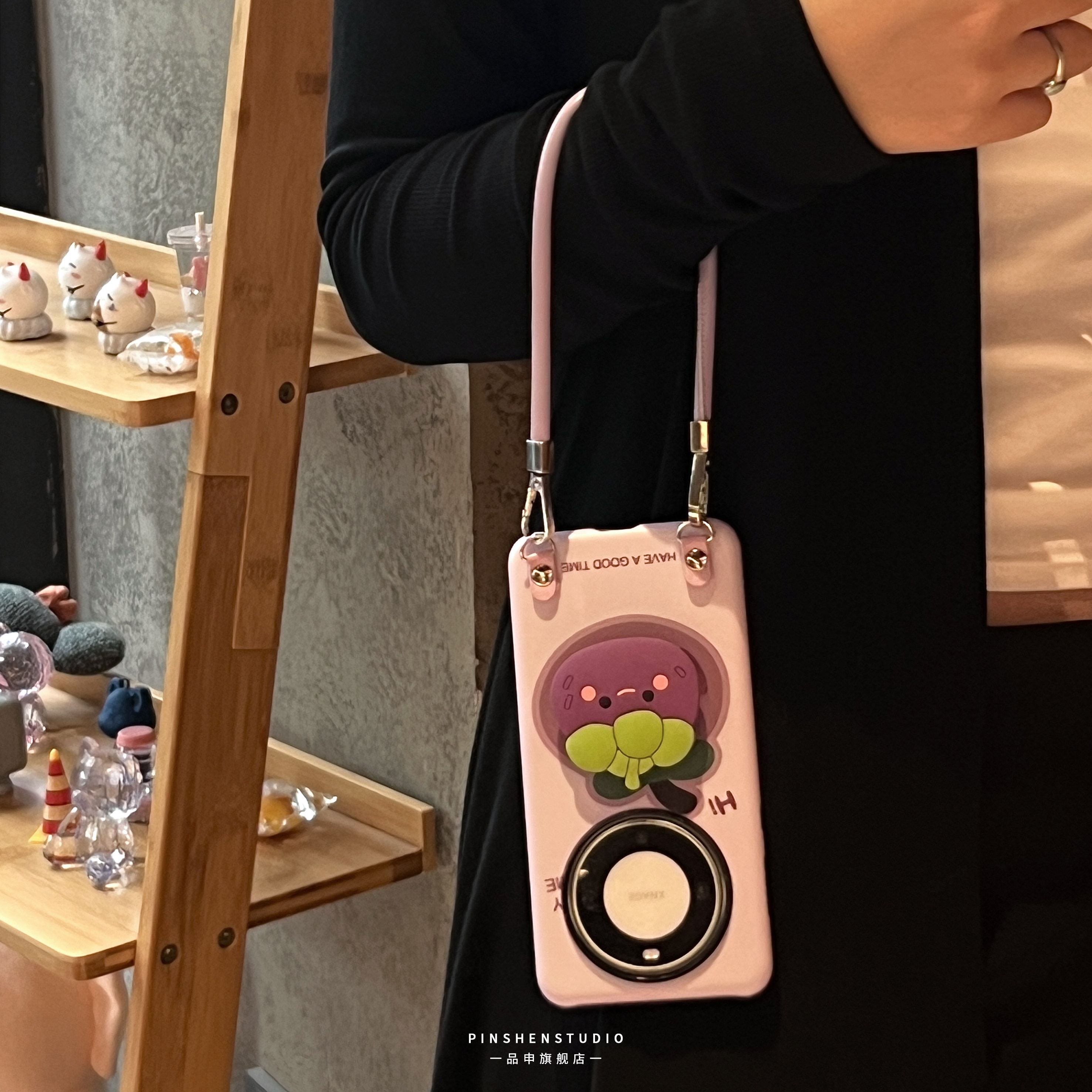 香芋紫卡通山竹支架手提绳手机壳