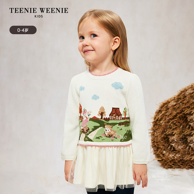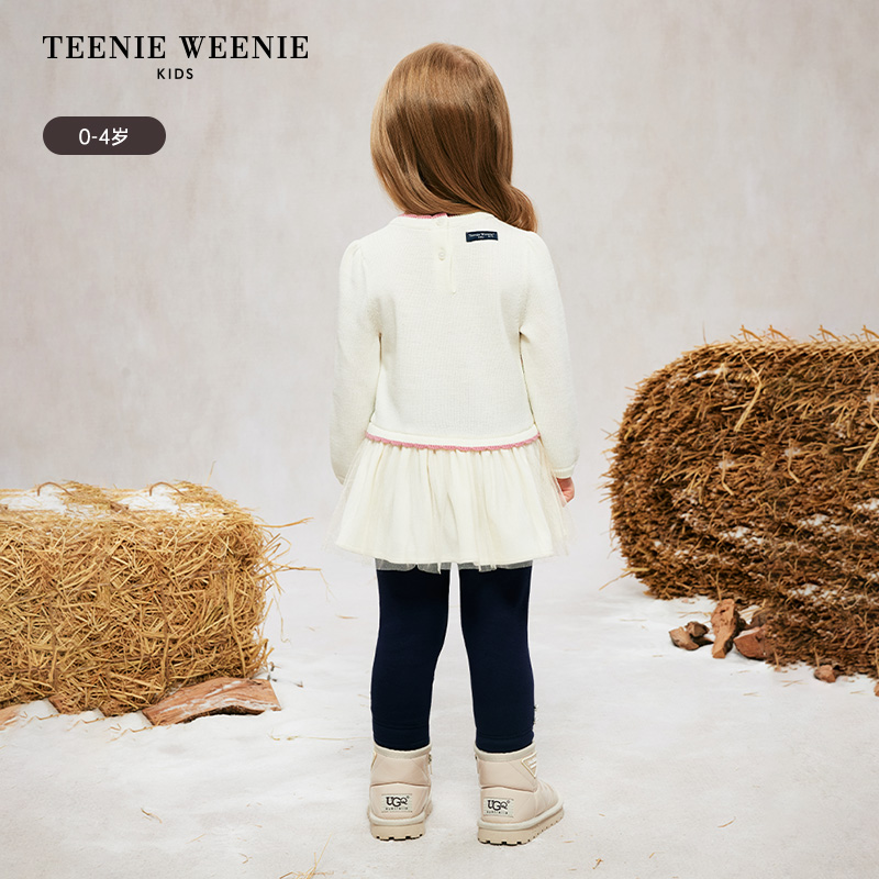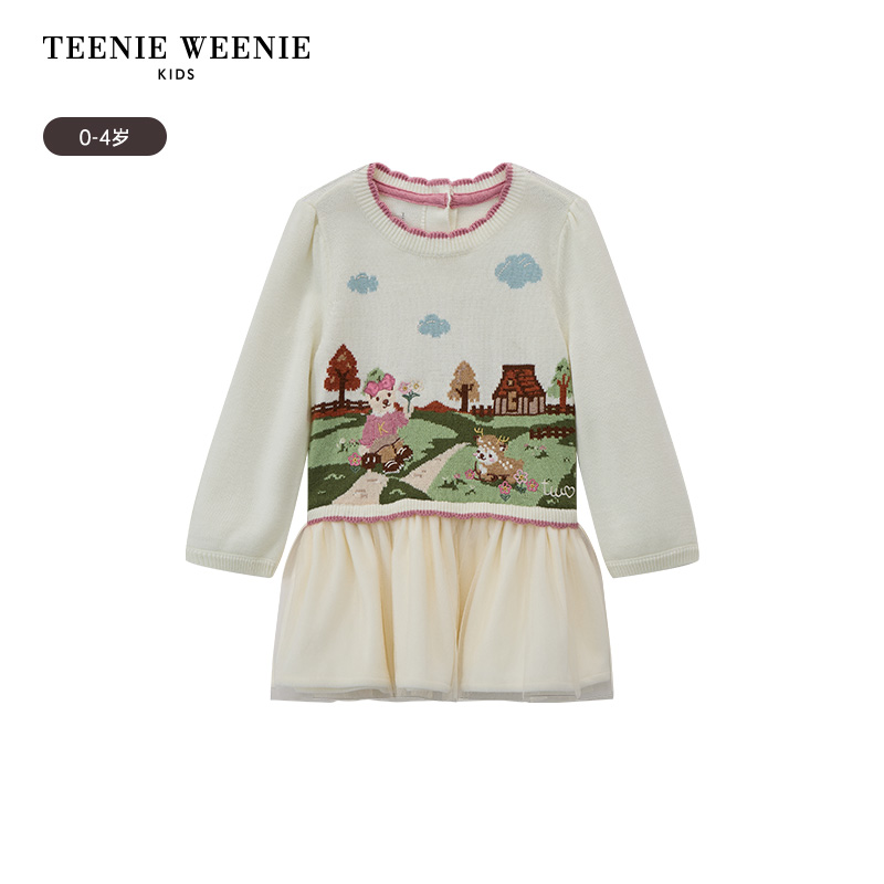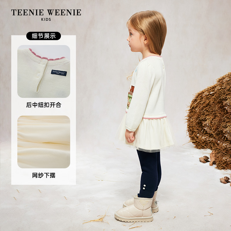 TeenieWeenie Kids小熊童装秋冬款女宝宝经典提花拼接毛织连衣裙