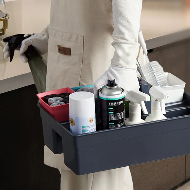 酒店餐厅手提清洁篮客房双格桶塑料方形医院保洁工具篮杂物收纳篮