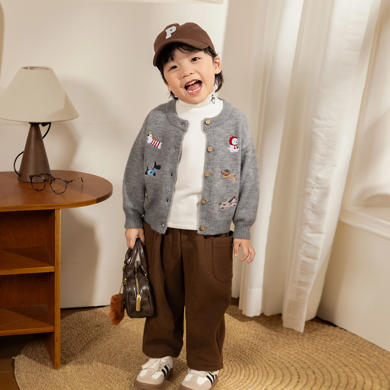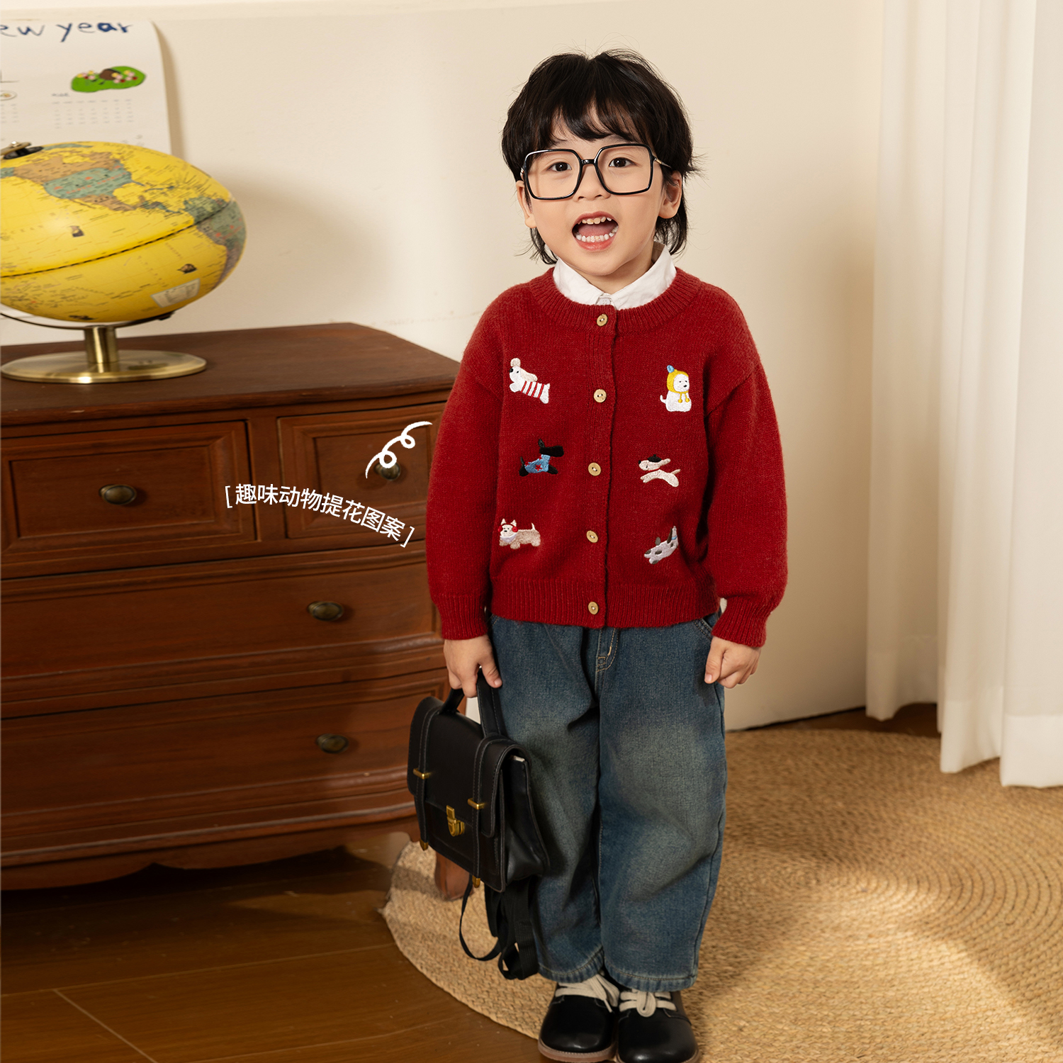 小O爸男婴童 男宝宝针织毛衣秋冬季2025新款红色婴儿保暖开衫外套