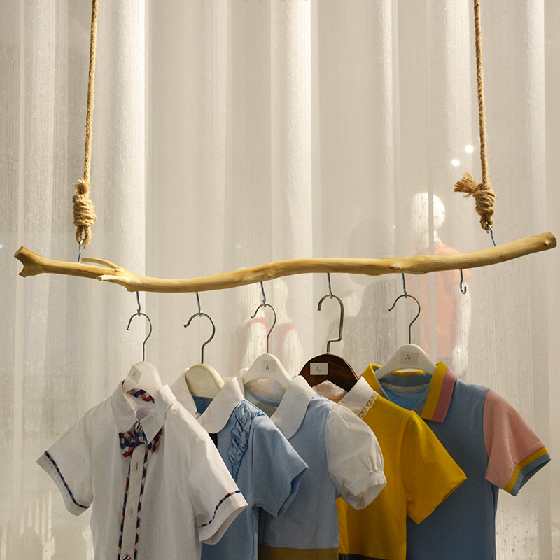 干树枝晾衣架原木吊顶悬挂枯树挂衣杆服装店展示架背景墙干枝装饰