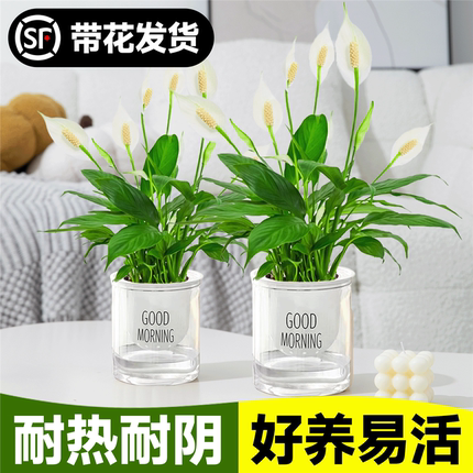 水培白掌绿植室内水培植物办公室内桌面盆栽绿萝水养花卉多季开花