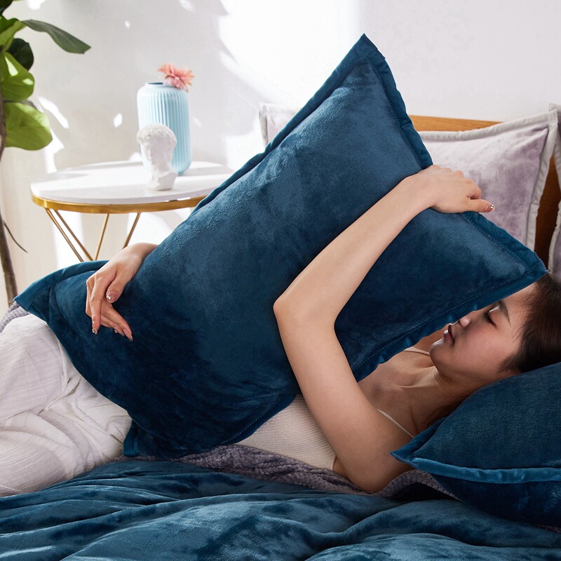 珊瑚绒枕套一对装秋冬加绒家用法兰牛奶绒单人枕头套枕芯套内胆套