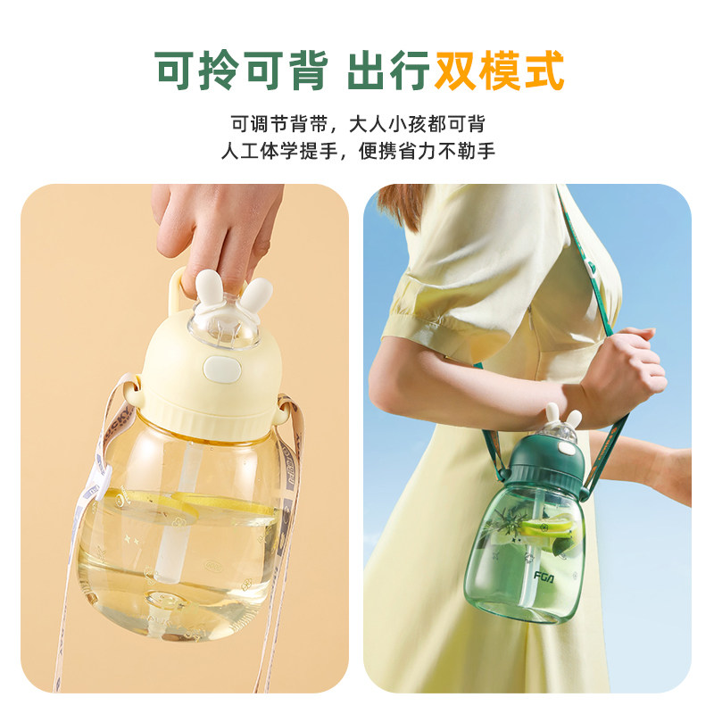 富光大容量水杯女可爱高颜值儿童学生运动水壶吸管杯子便携大肚杯
