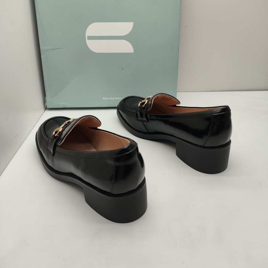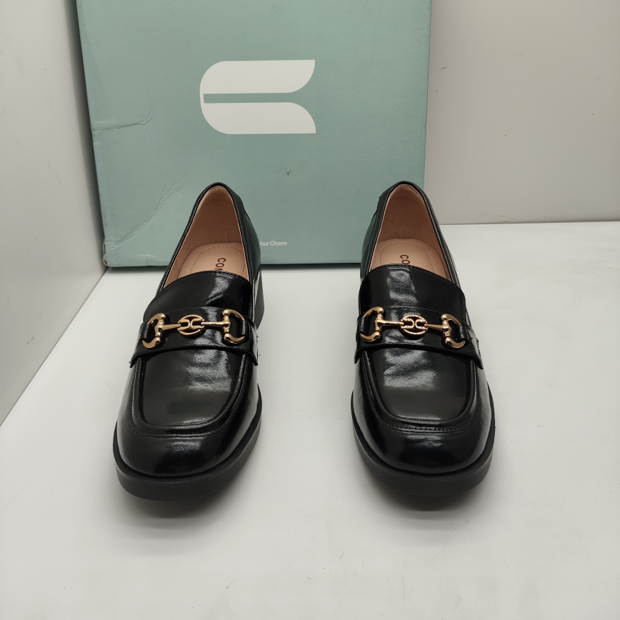 Comely康莉断码撤柜秋季粗跟搭扣乐福鞋牛皮休闲舒适一脚蹬女单鞋