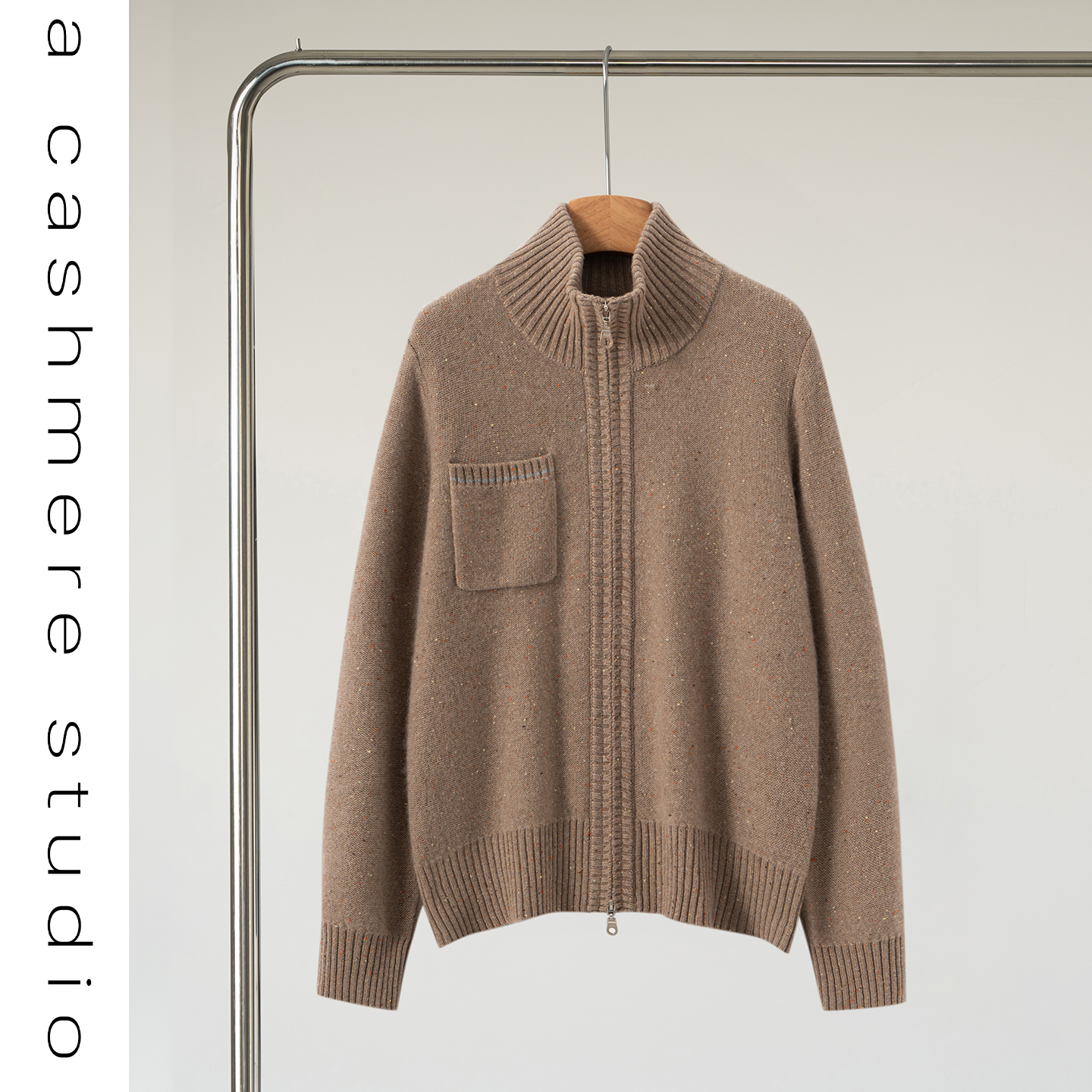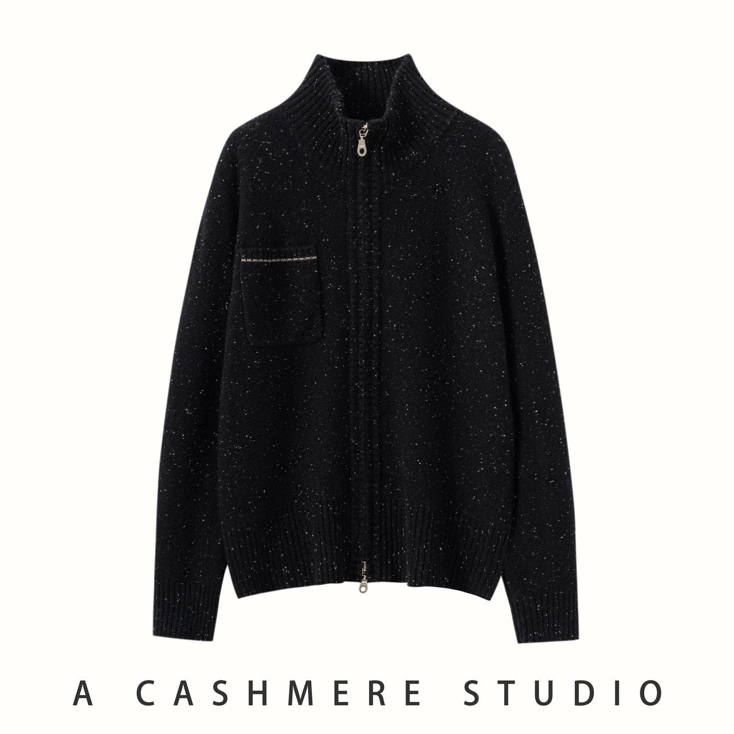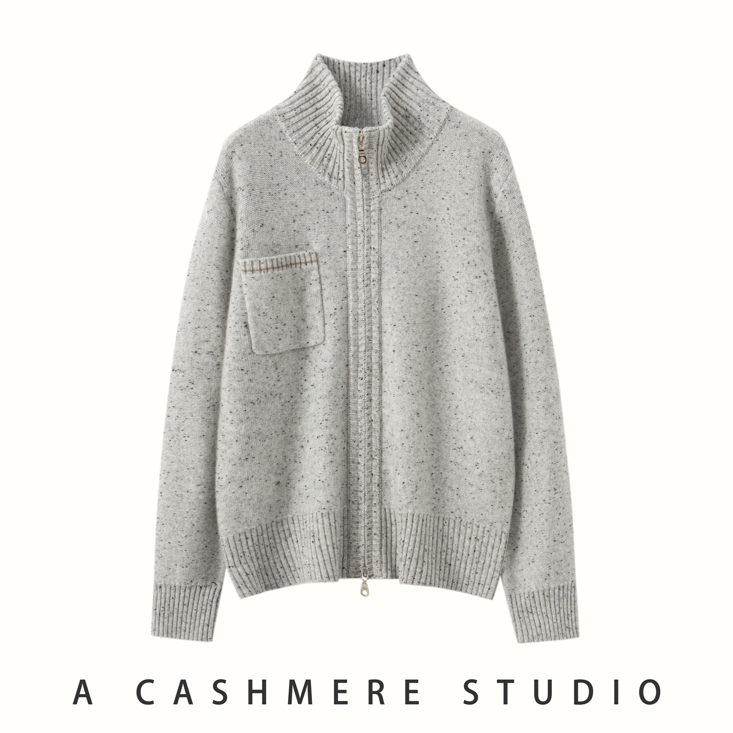 秋冬新款高领山羊绒开衫女高领拉链开衫外套宽松针织毛衣保暖外套