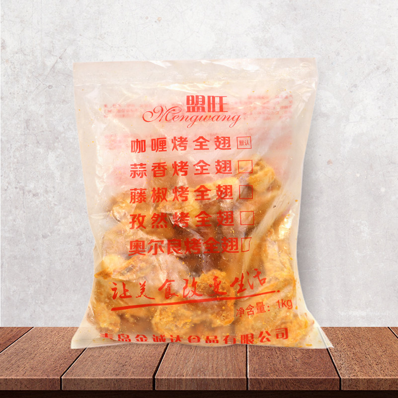 盟旺咖喱烤全翅烤翅冷冻半成品烤鸡翅商用烧烤油炸小吃1KG约12个
