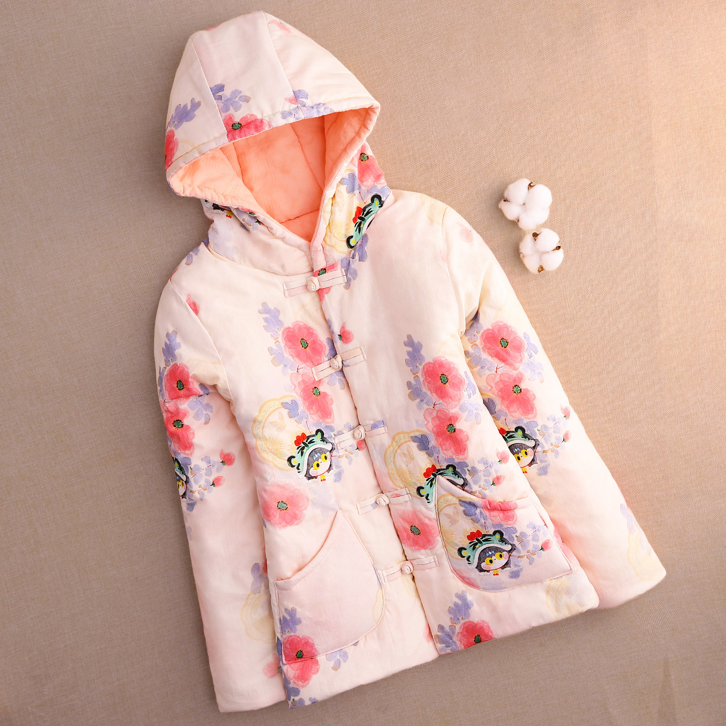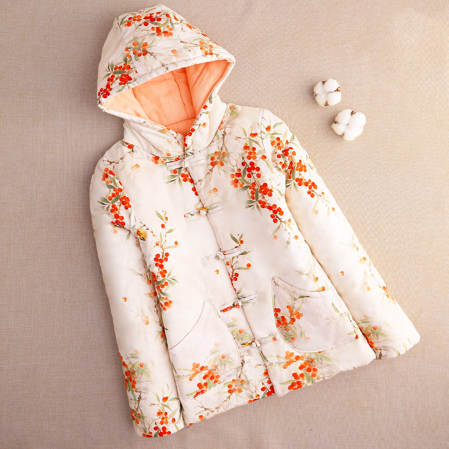 女士棉花棉衣国风盘扣夹棉保暖外穿棉袄秋冬防风连帽时尚棉服外套