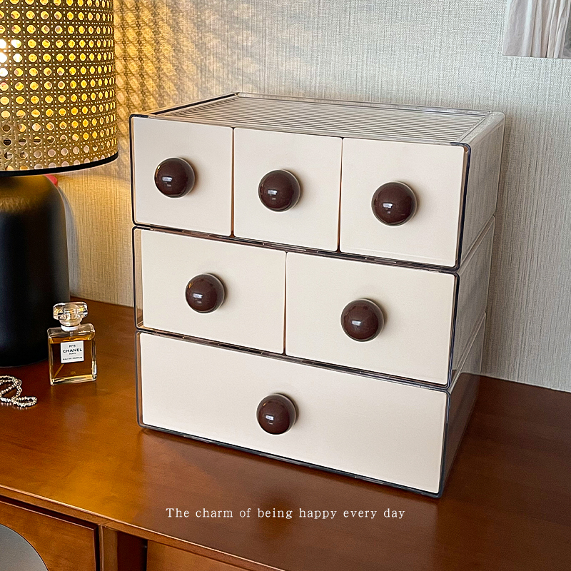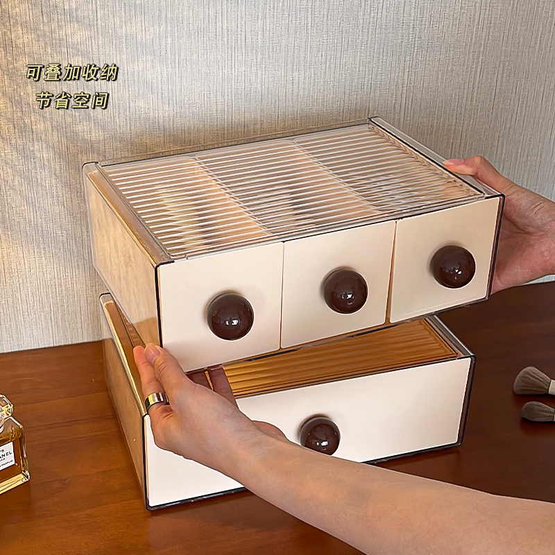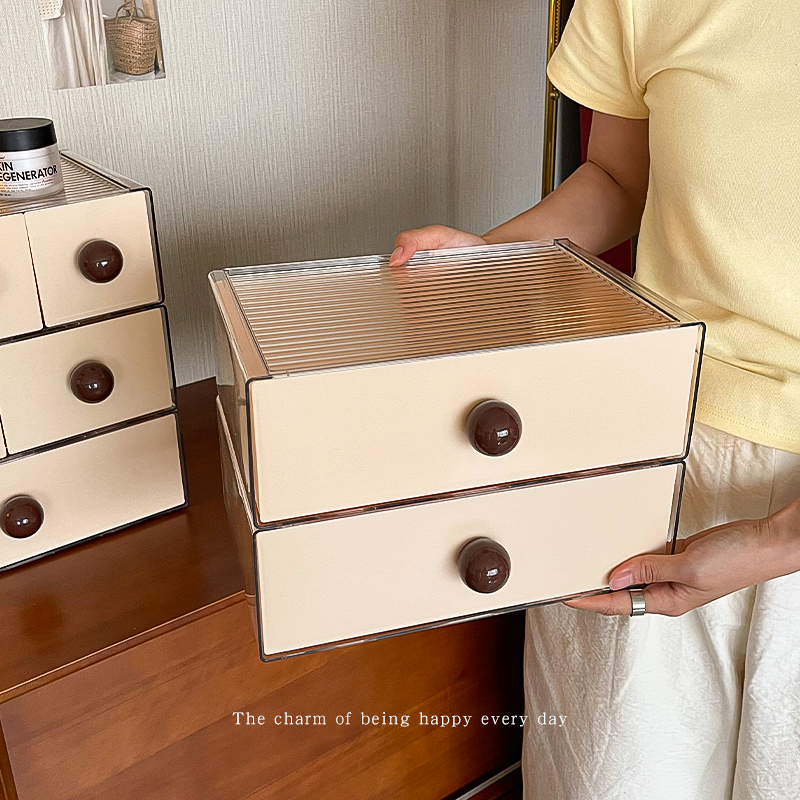 中古风桌面收纳盒抽屉式防尘大容量塑料盒子长方形桌上置物架多层