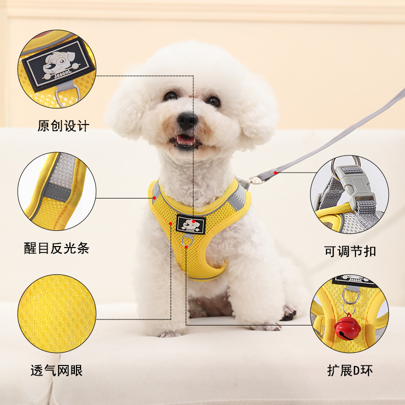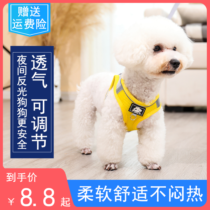 背心式狗狗牵引绳小型犬泰迪比熊博美胸背带小狗幼犬遛狗绳狗链子