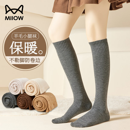 猫人羊毛小腿袜女秋冬季长筒袜