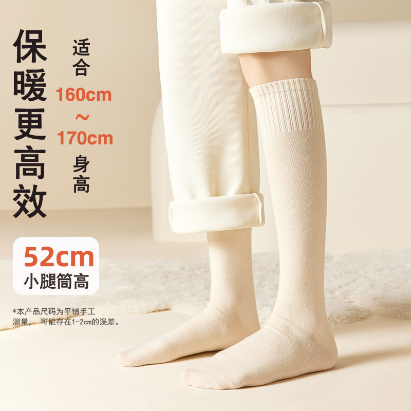 猫人羊毛小腿袜女秋冬季加厚灰色长筒袜保暖加长高筒乐福鞋jk袜子