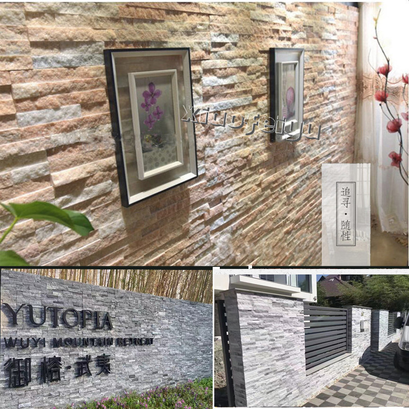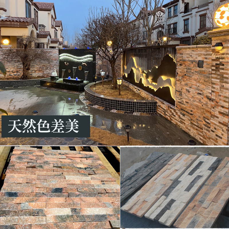 天然文化石白粉红黑灰色室内别墅花园水泥外墙玄关招牌背景墙瓷砖