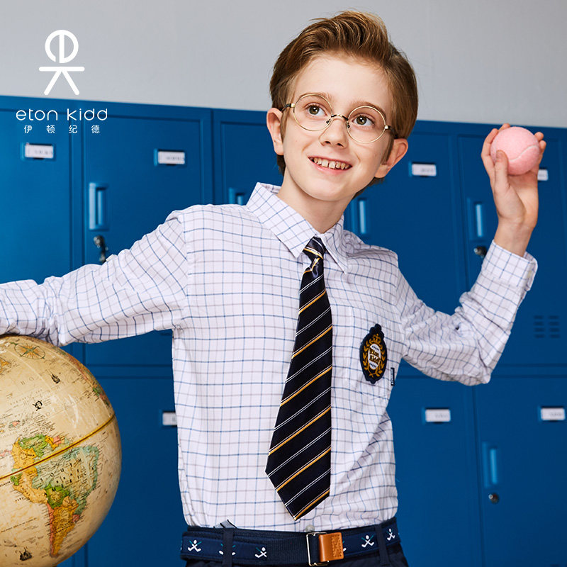 伊顿纪德春秋装童装儿童衬衫男童女童长袖格子衬衣团购套装
