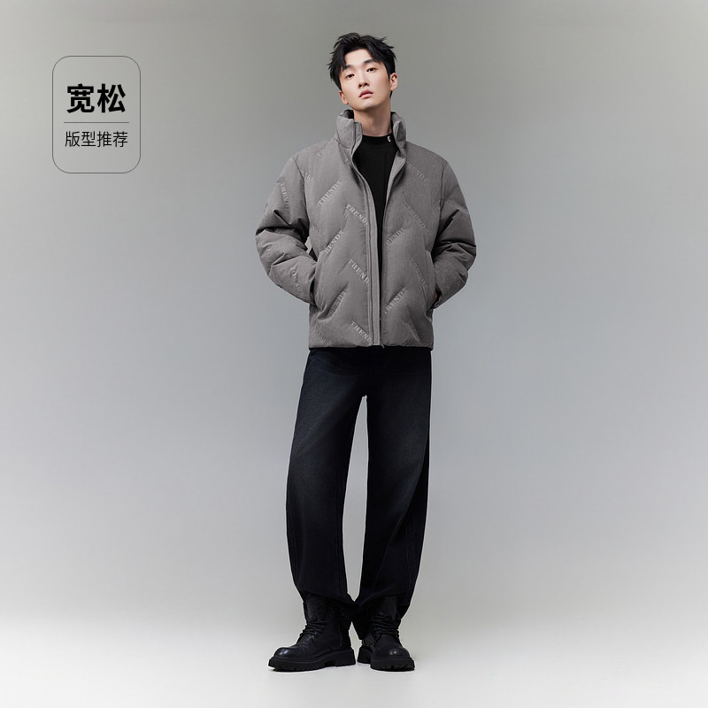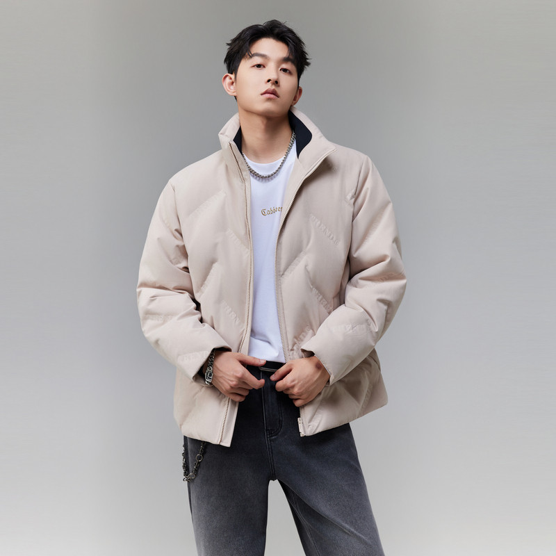 【三防桃皮绒】卡宾立领短款羽绒服男2025冬季新款高端防寒厚外套