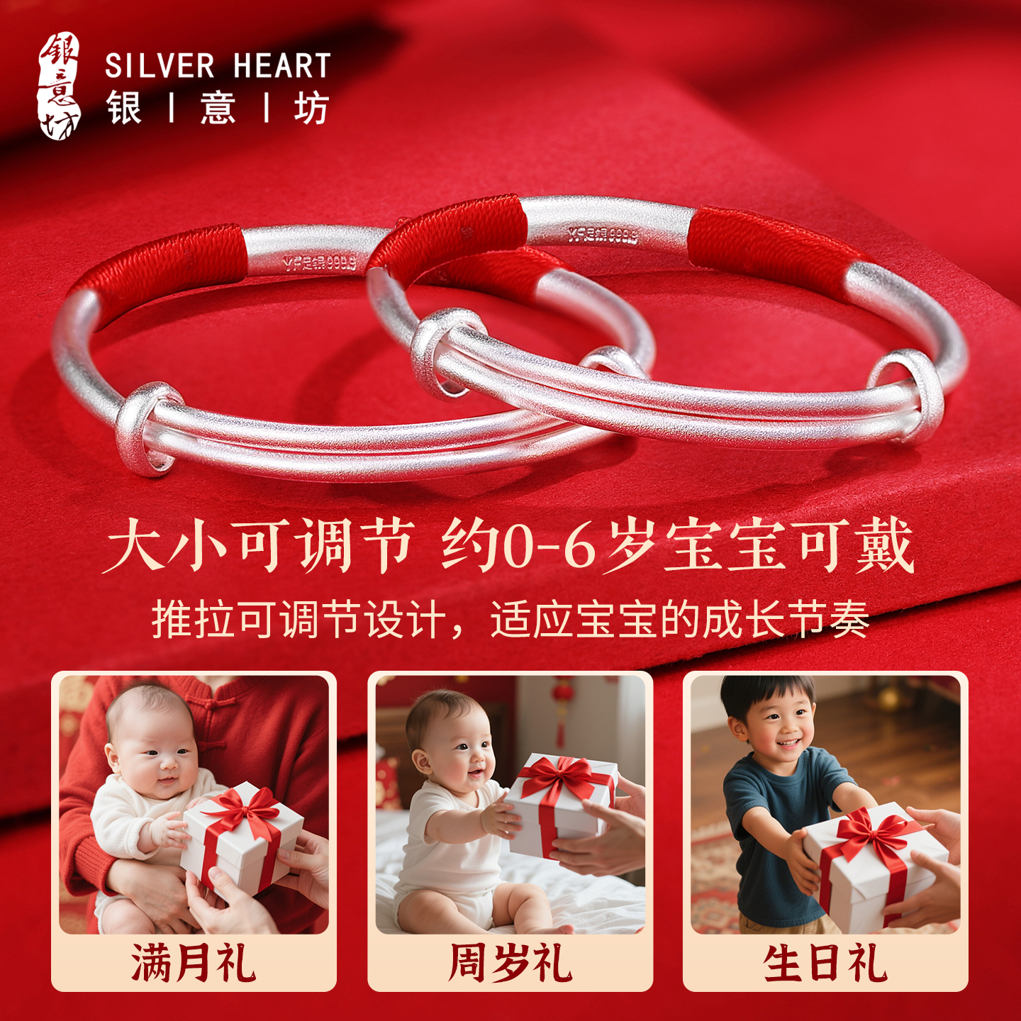 银项圈宝宝银手镯三件套天子门生银锁长命锁婴儿银饰满月周岁礼物