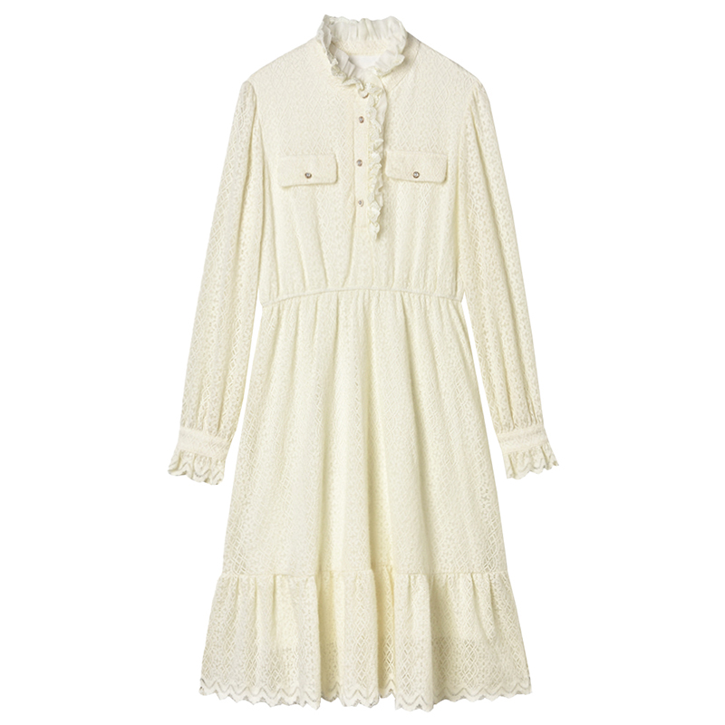 奥莱专柜品牌撤柜正品 RU秋装2025新款 蕾丝拼接中裙温柔风连衣裙