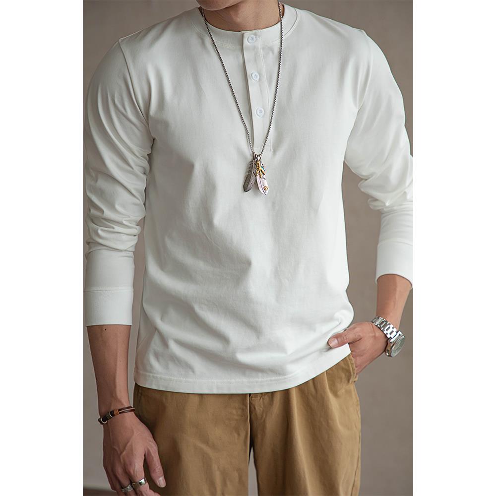 Me Blade美国覆古300克重量级亨利衬衫纯棉t恤长袖宽松底裤卡其色