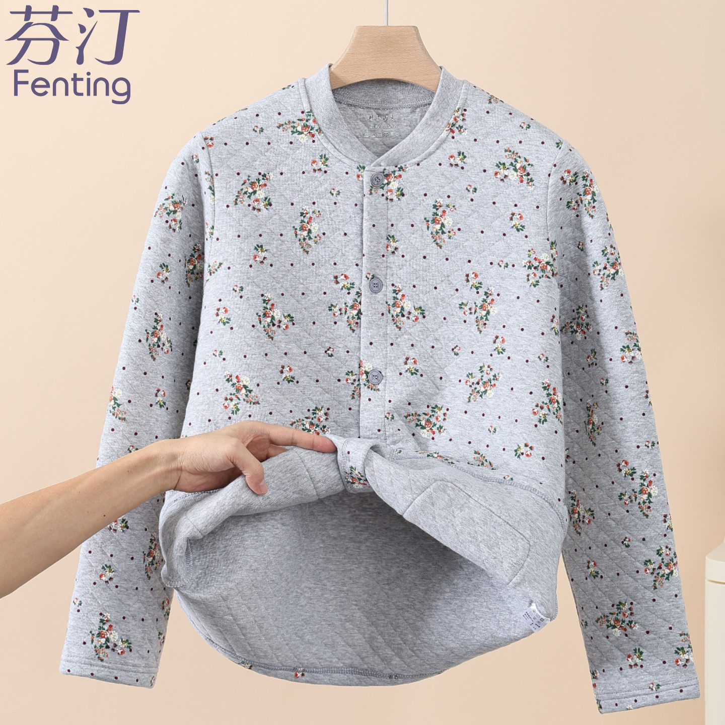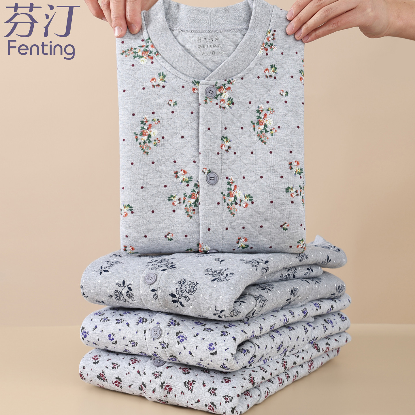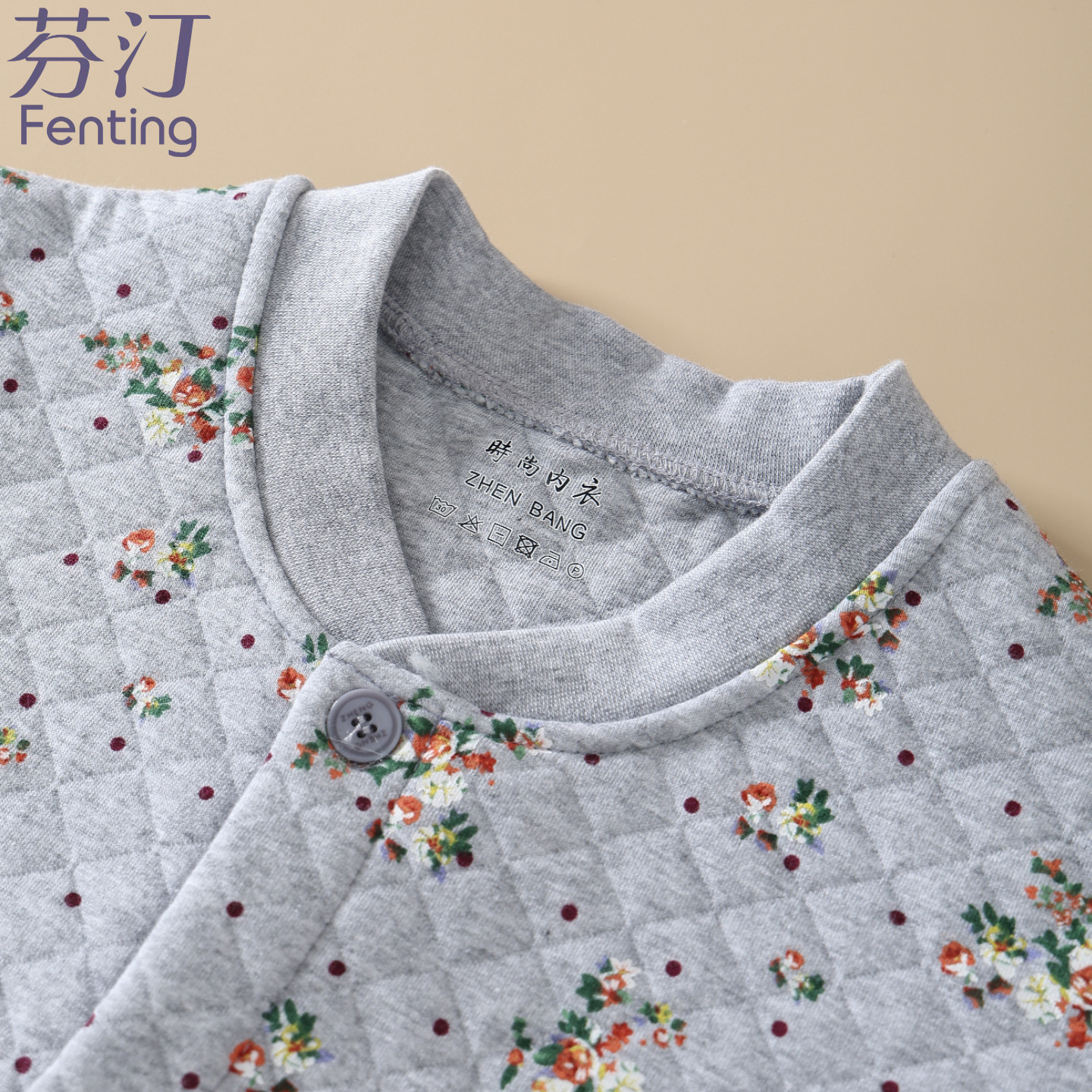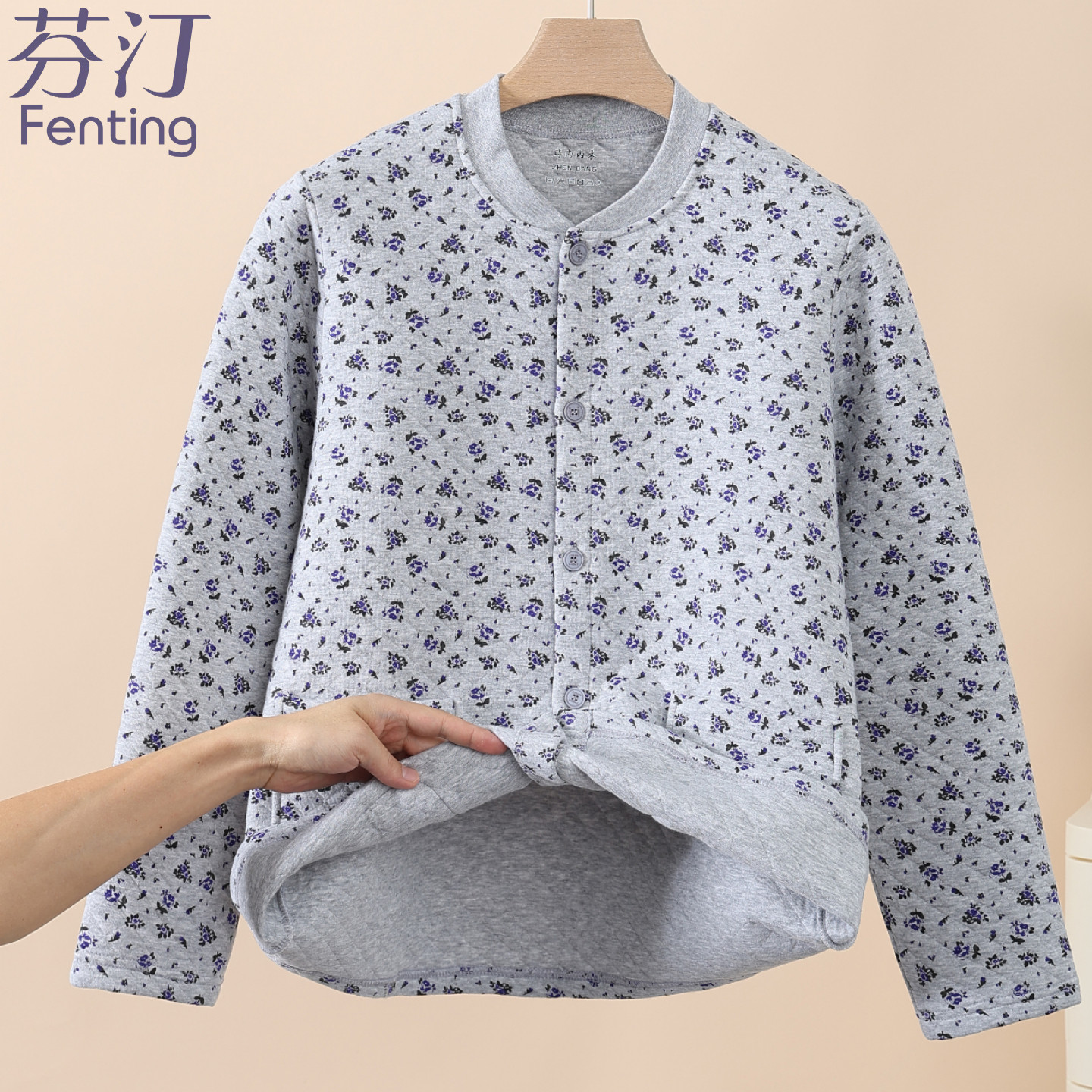 老年人开衫保暖衣加绒加厚冬季妈妈秋衣秋裤女套装中老年棉袄棉裤