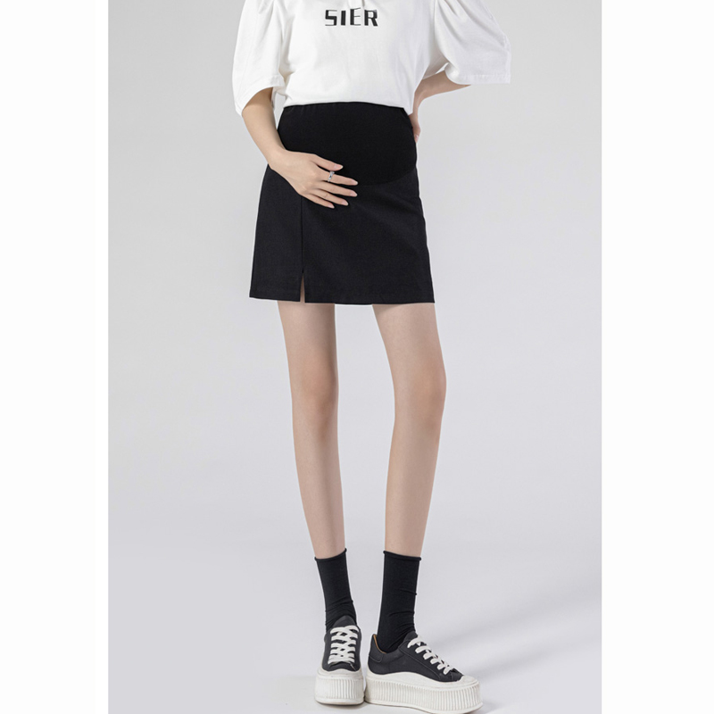 孕妇包臀开叉短裙春秋冬季韩版显瘦A字黑色托腹裙子防走光半身裙