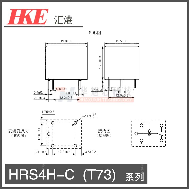 汇港T73继电器HRS4H-S-DC5V 12V-C 5脚 10A HRS4H -S-DC3V 24V-A